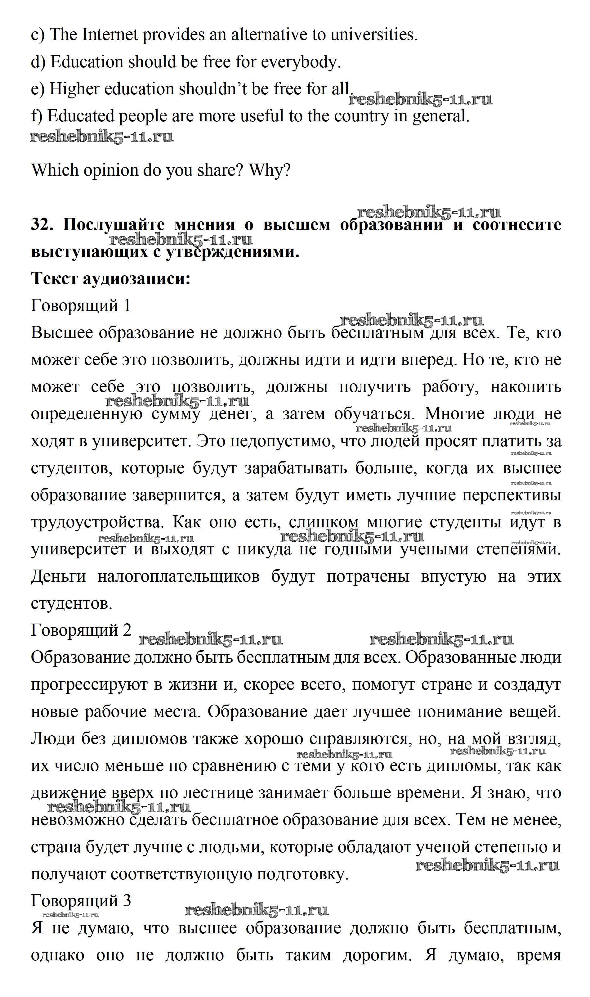Готовая домашняя работа с ответами по Английскому языку за 11 класс Биболетова, Бабушис, Снежко Учебник Enjoy English Дрофа 2017 ФГОС - Unit 2. Your Dream Job 32