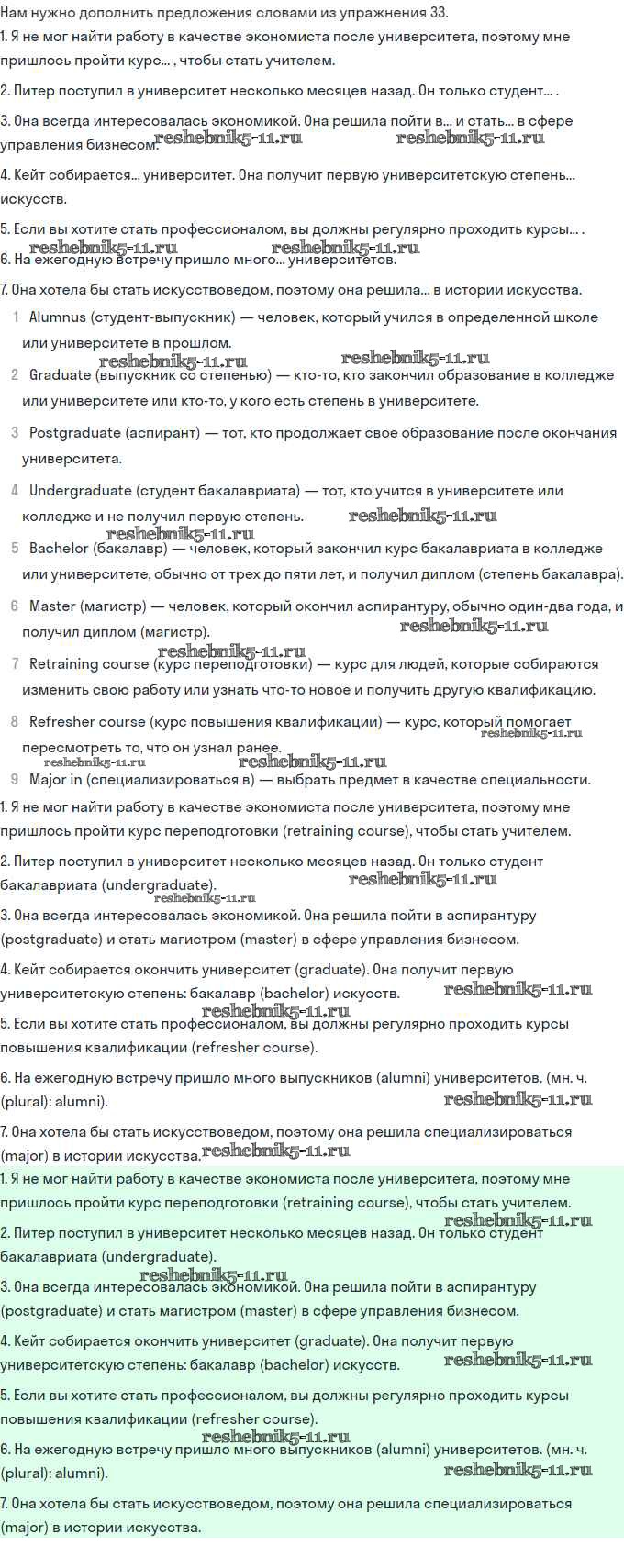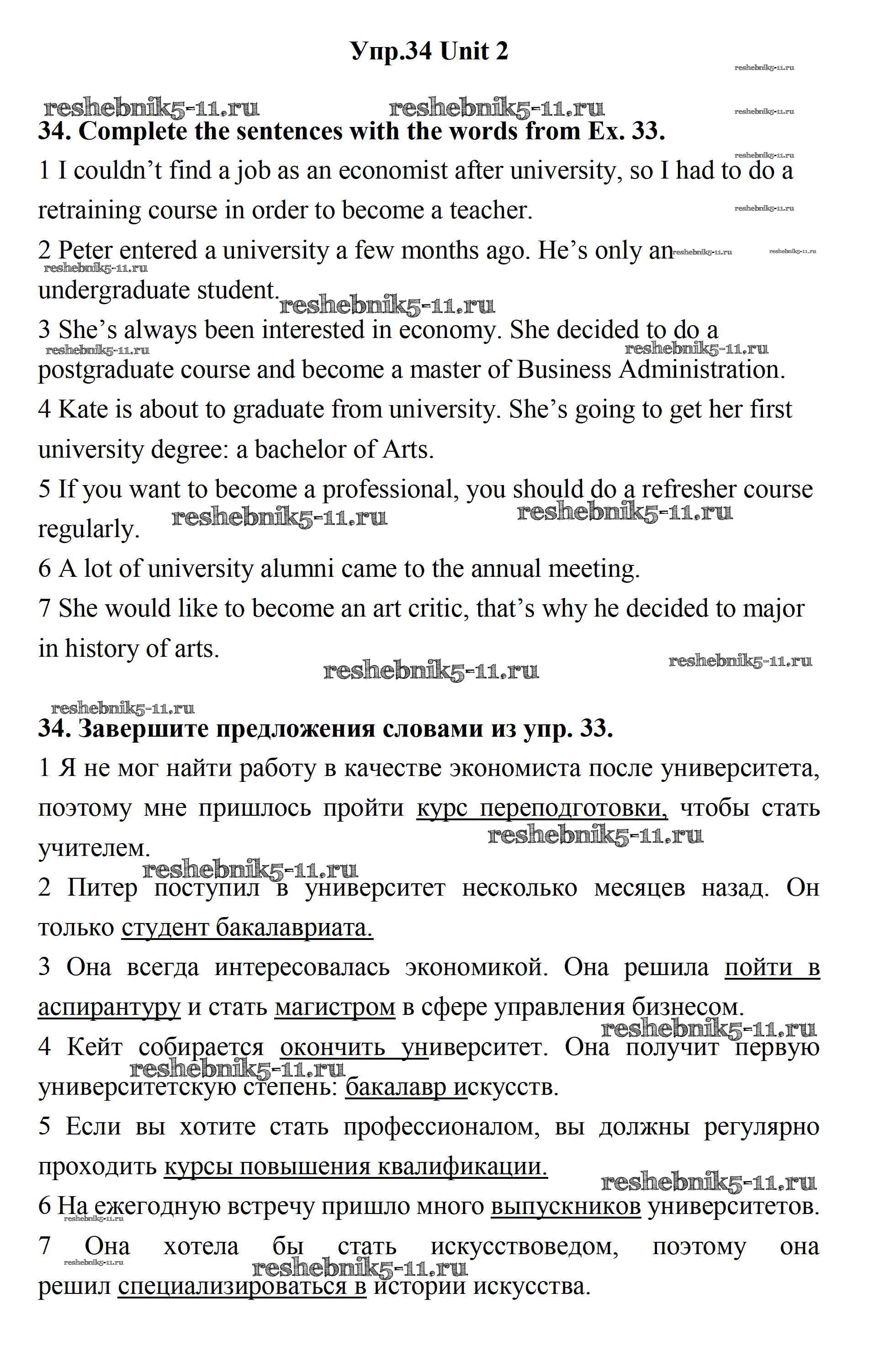 Готовая домашняя работа с ответами по Английскому языку за 11 класс Биболетова, Бабушис, Снежко Учебник Enjoy English Дрофа 2017 ФГОС - Unit 2. Your Dream Job 34
