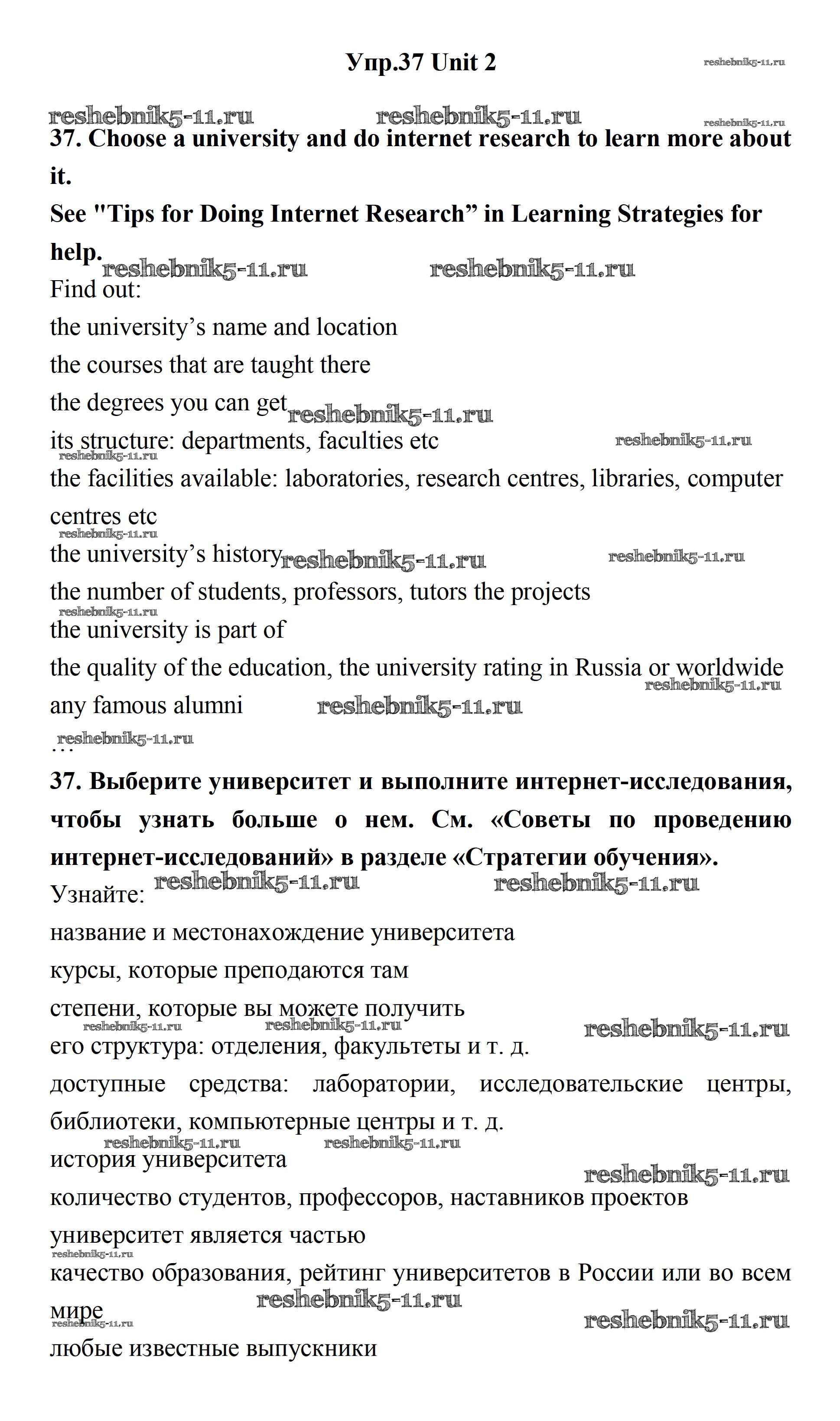 Готовая домашняя работа с ответами по Английскому языку за 11 класс Биболетова, Бабушис, Снежко Учебник Enjoy English Дрофа 2017 ФГОС - Unit 2. Your Dream Job 37