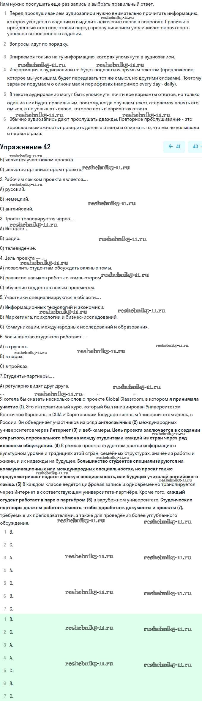 Готовая домашняя работа с ответами по Английскому языку за 11 класс Биболетова, Бабушис, Снежко Учебник Enjoy English Дрофа 2017 ФГОС - Unit 2. Your Dream Job 42