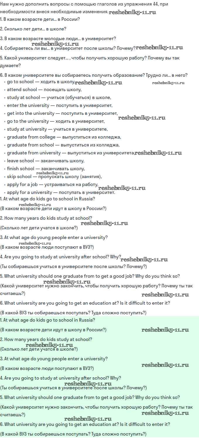 Готовая домашняя работа с ответами по Английскому языку за 11 класс Биболетова, Бабушис, Снежко Учебник Enjoy English Дрофа 2017 ФГОС - Unit 2. Your Dream Job 45