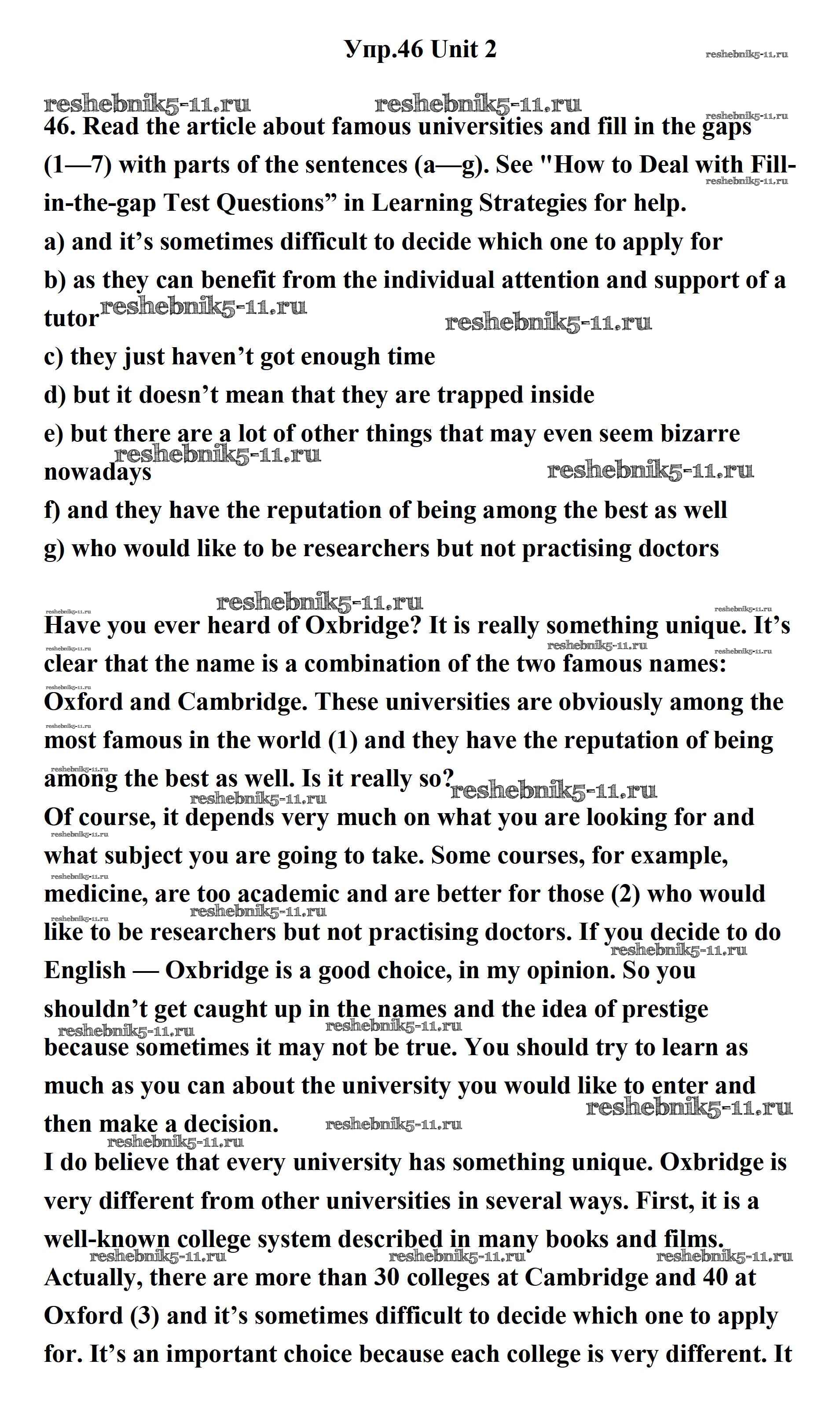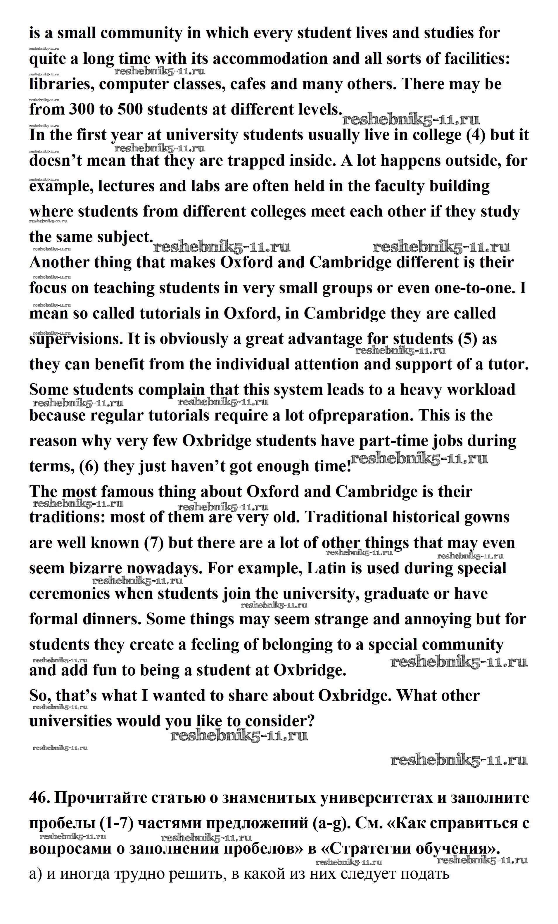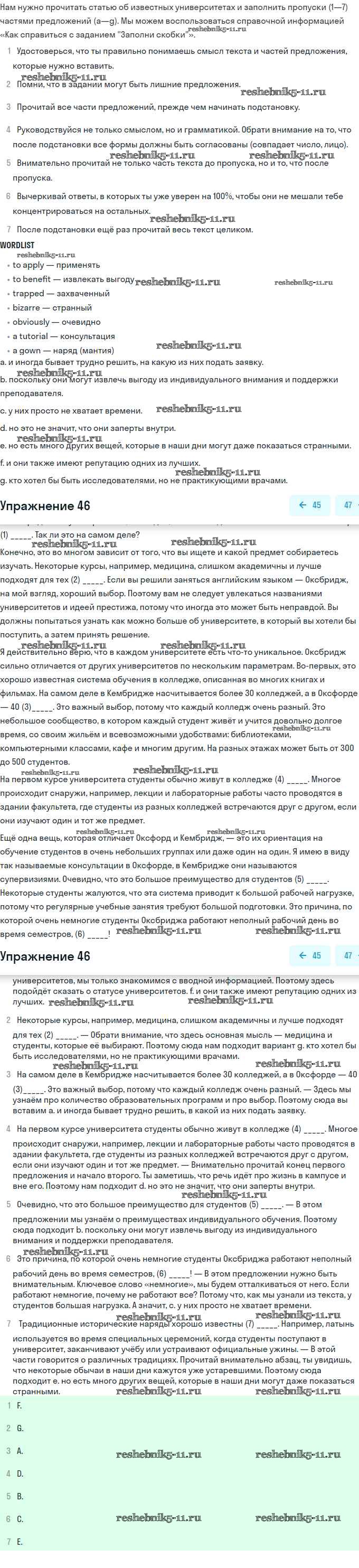 Готовая домашняя работа с ответами по Английскому языку за 11 класс Биболетова, Бабушис, Снежко Учебник Enjoy English Дрофа 2017 ФГОС - Unit 2. Your Dream Job 46