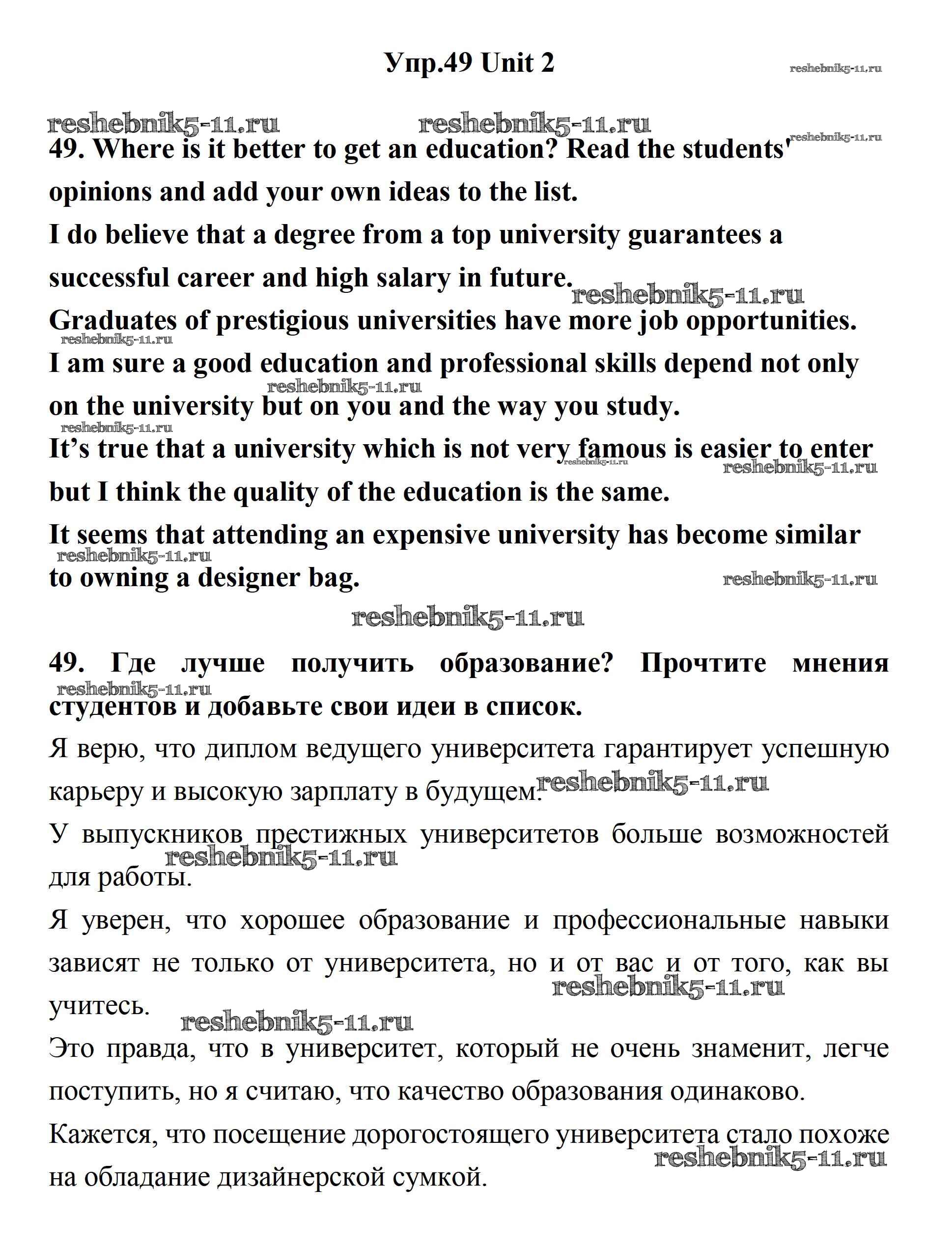 Готовая домашняя работа с ответами по Английскому языку за 11 класс Биболетова, Бабушис, Снежко Учебник Enjoy English Дрофа 2017 ФГОС - Unit 2. Your Dream Job 49