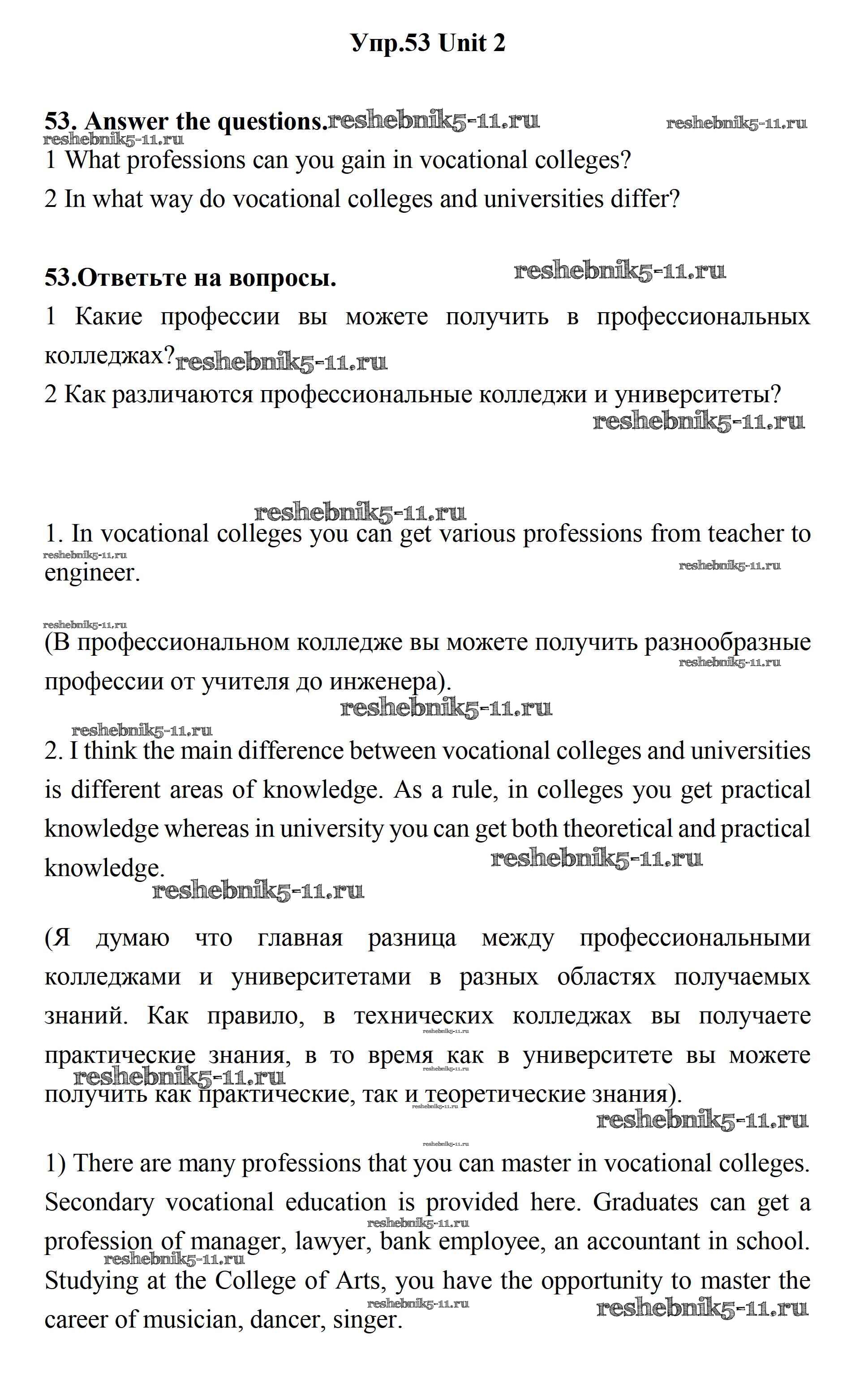 Готовая домашняя работа с ответами по Английскому языку за 11 класс Биболетова, Бабушис, Снежко Учебник Enjoy English Дрофа 2017 ФГОС - Unit 2. Your Dream Job 53