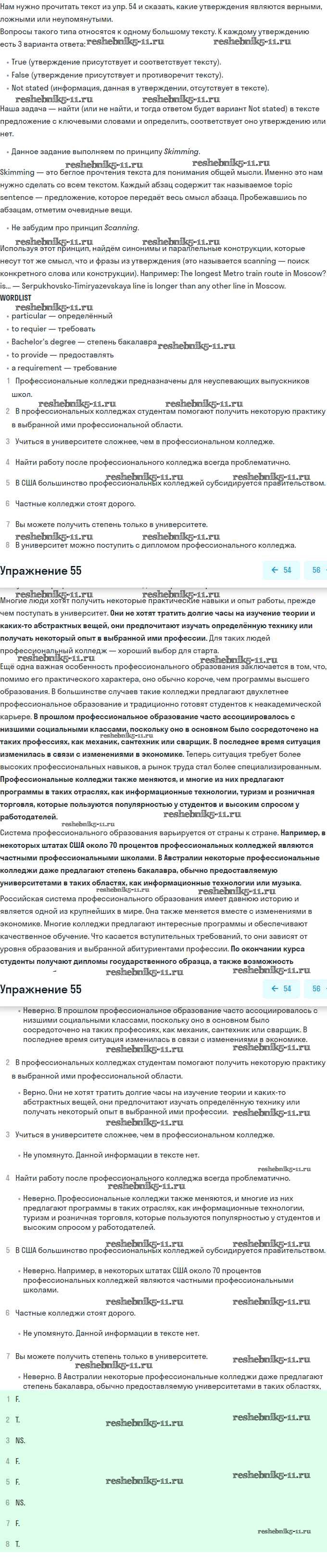 Готовая домашняя работа с ответами по Английскому языку за 11 класс Биболетова, Бабушис, Снежко Учебник Enjoy English Дрофа 2017 ФГОС - Unit 2. Your Dream Job 55