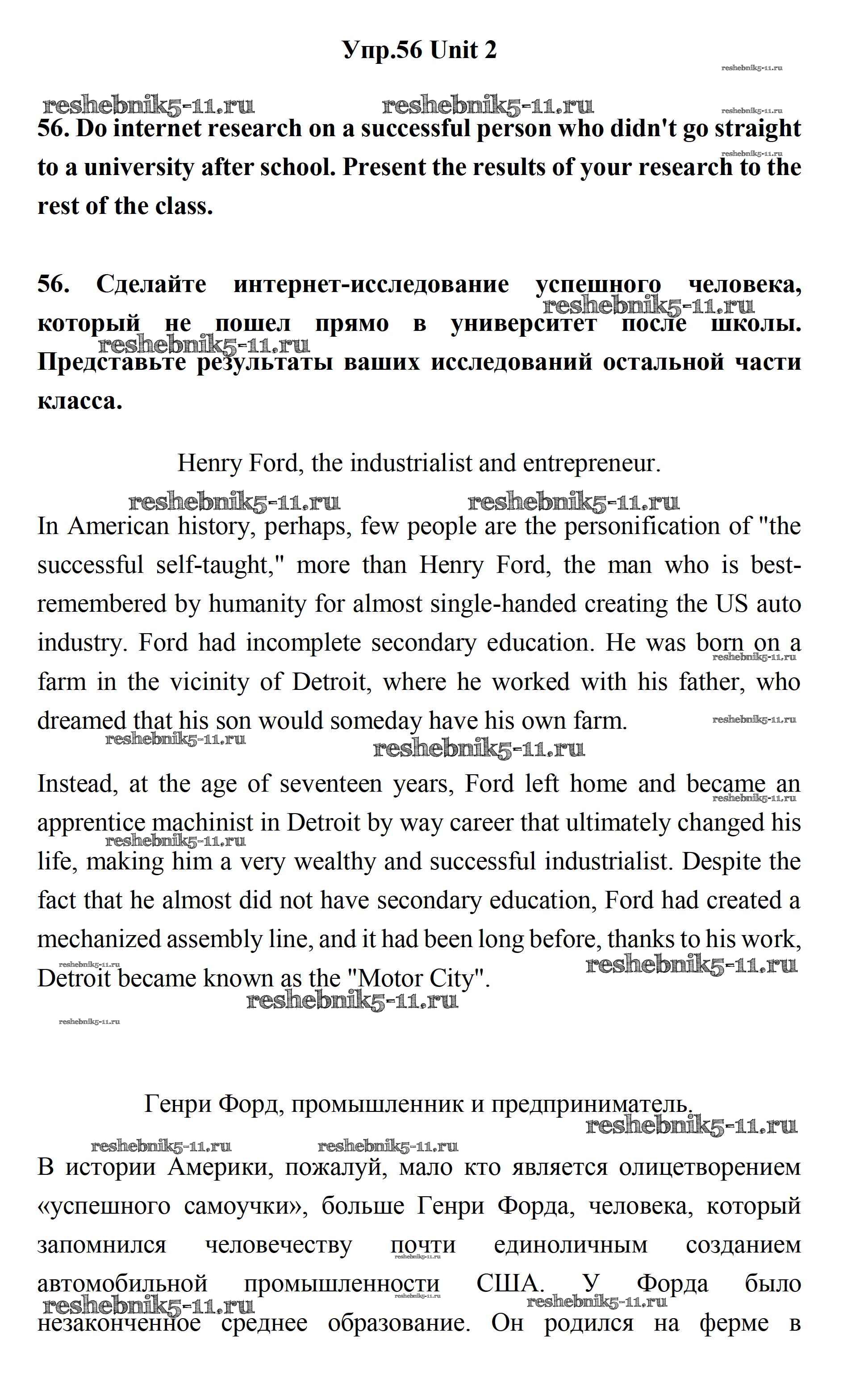 Готовая домашняя работа с ответами по Английскому языку за 11 класс Биболетова, Бабушис, Снежко Учебник Enjoy English Дрофа 2017 ФГОС - Unit 2. Your Dream Job 56