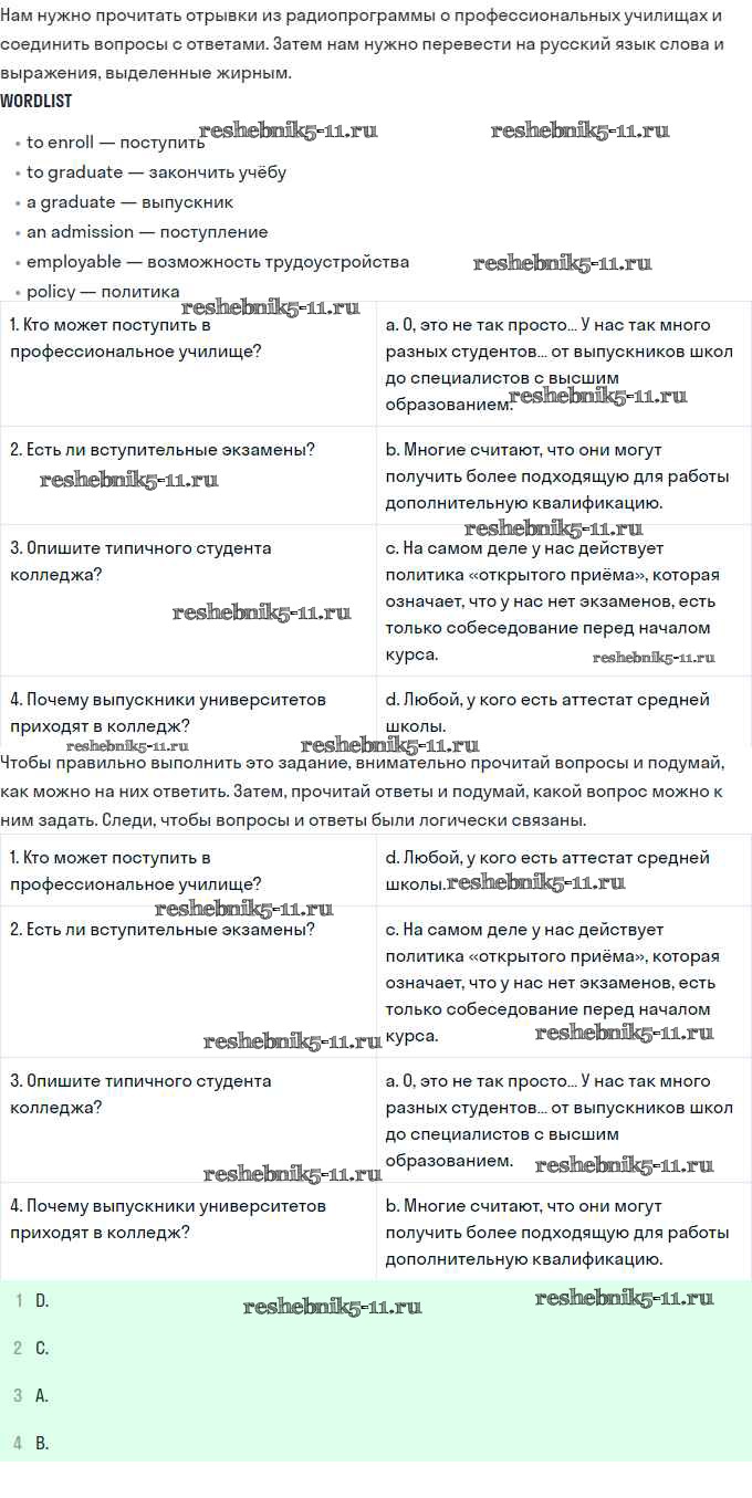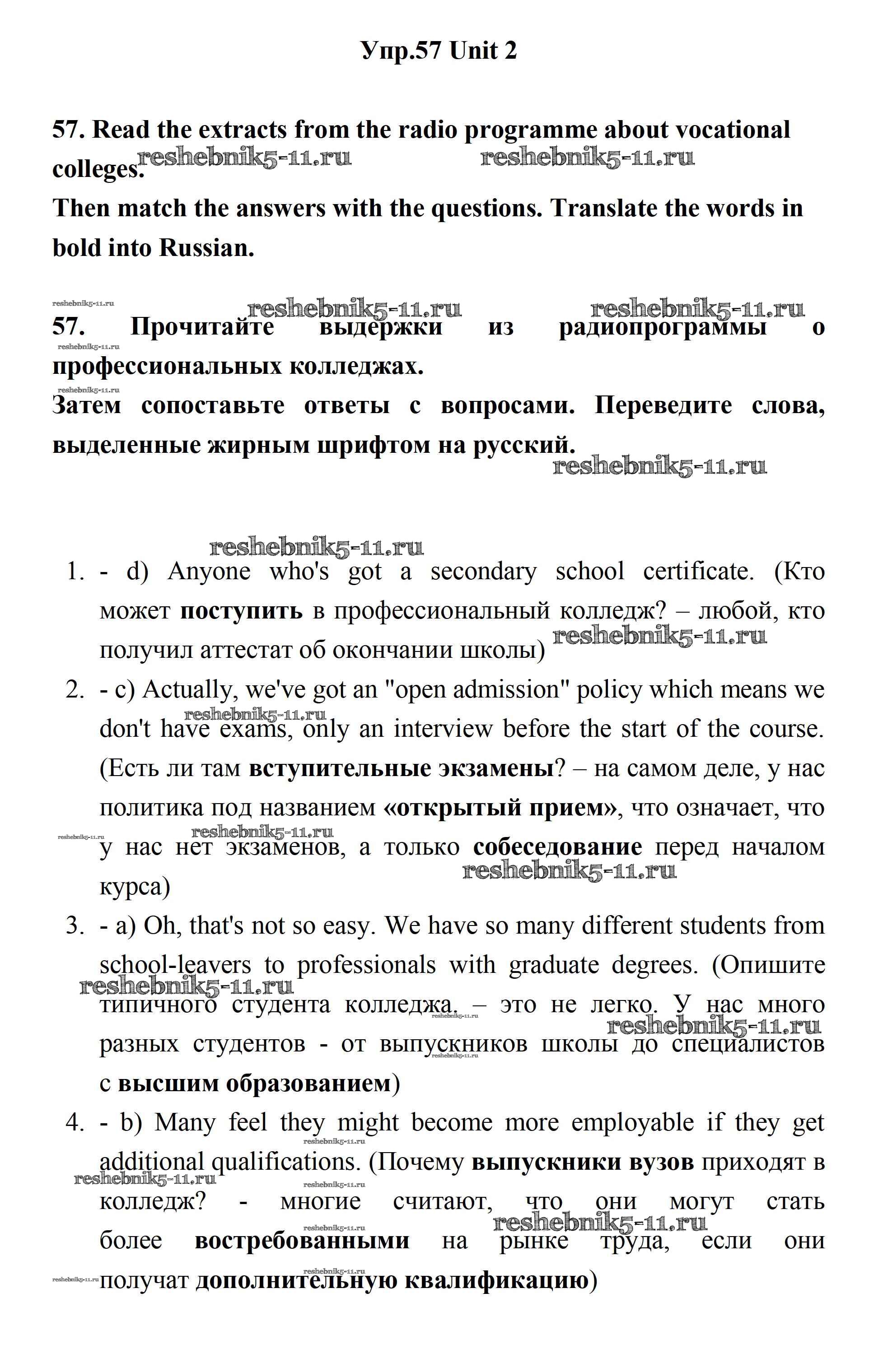 Готовая домашняя работа с ответами по Английскому языку за 11 класс Биболетова, Бабушис, Снежко Учебник Enjoy English Дрофа 2017 ФГОС - Unit 2. Your Dream Job 57