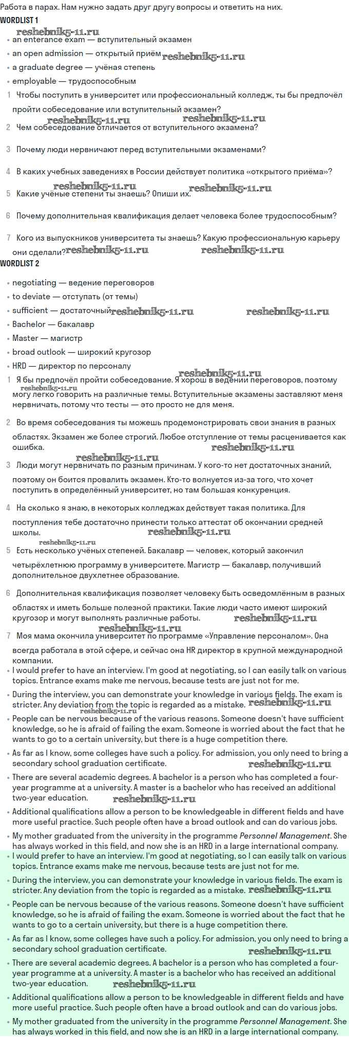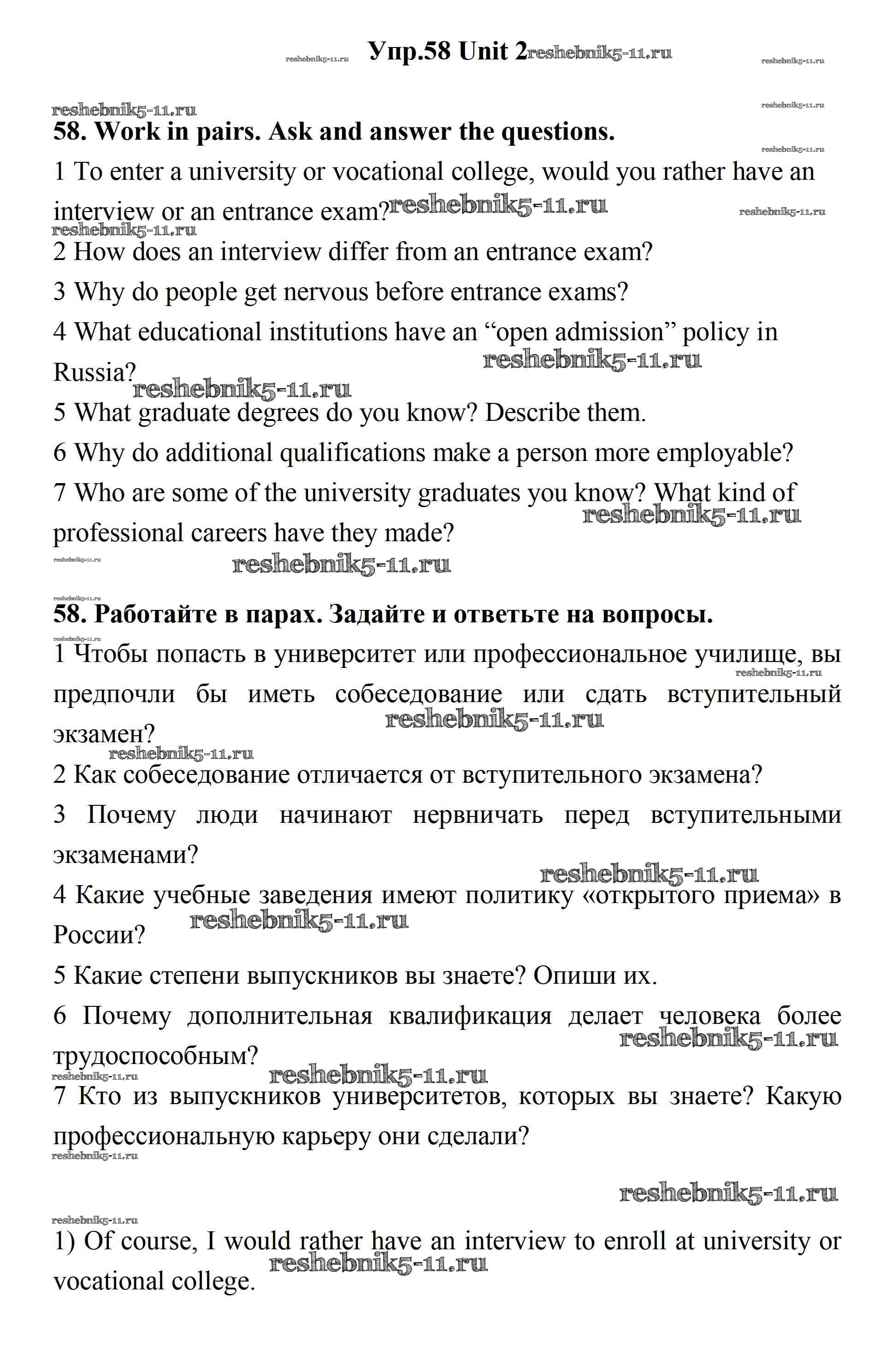 Готовая домашняя работа с ответами по Английскому языку за 11 класс Биболетова, Бабушис, Снежко Учебник Enjoy English Дрофа 2017 ФГОС - Unit 2. Your Dream Job 58