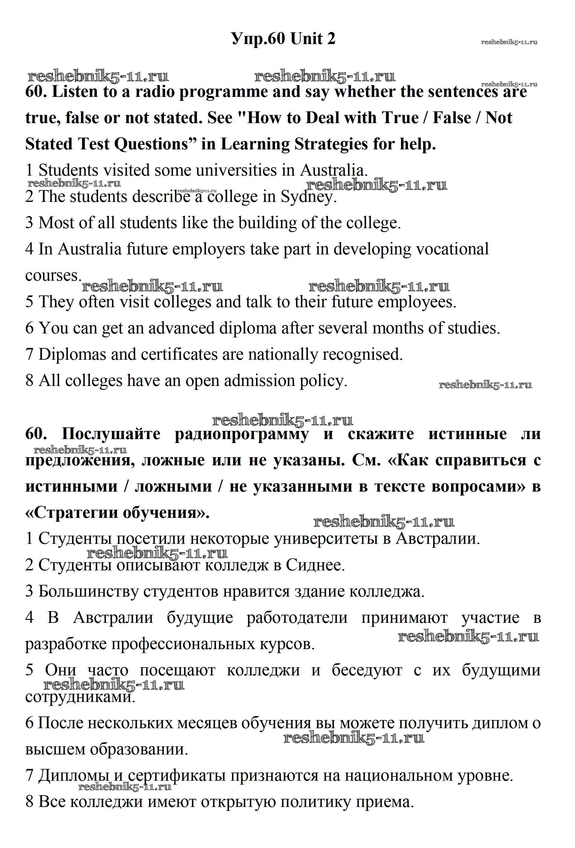 Готовая домашняя работа с ответами по Английскому языку за 11 класс Биболетова, Бабушис, Снежко Учебник Enjoy English Дрофа 2017 ФГОС - Unit 2. Your Dream Job 59