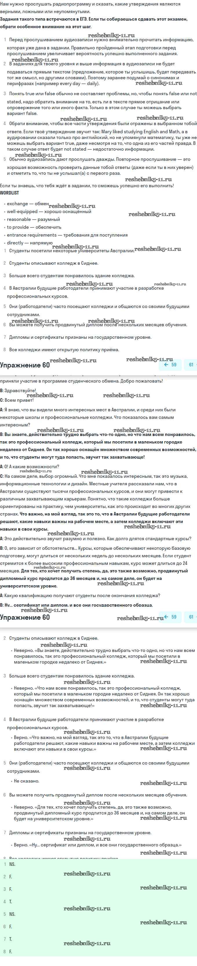 Готовая домашняя работа с ответами по Английскому языку за 11 класс Биболетова, Бабушис, Снежко Учебник Enjoy English Дрофа 2017 ФГОС - Unit 2. Your Dream Job 60