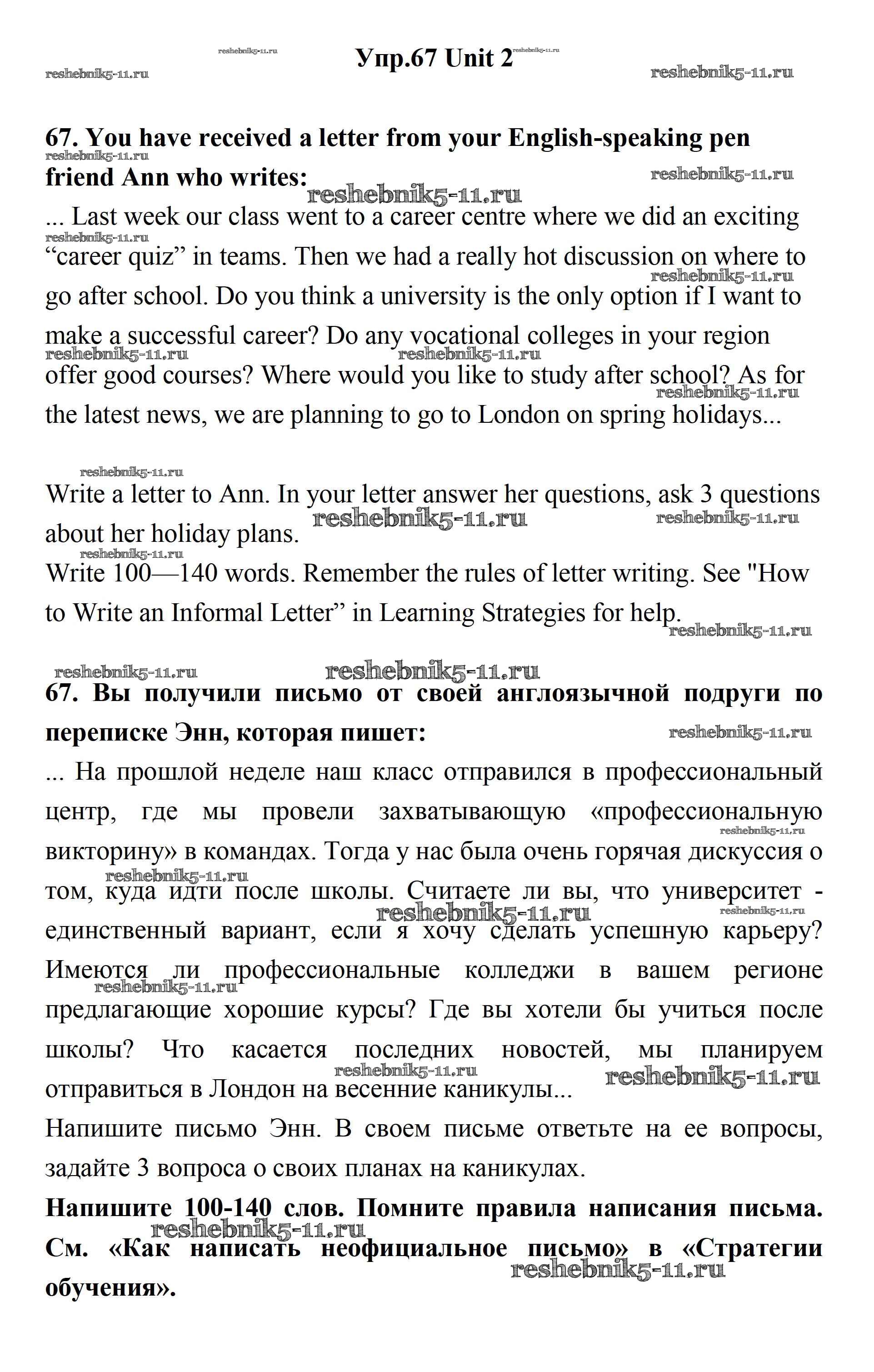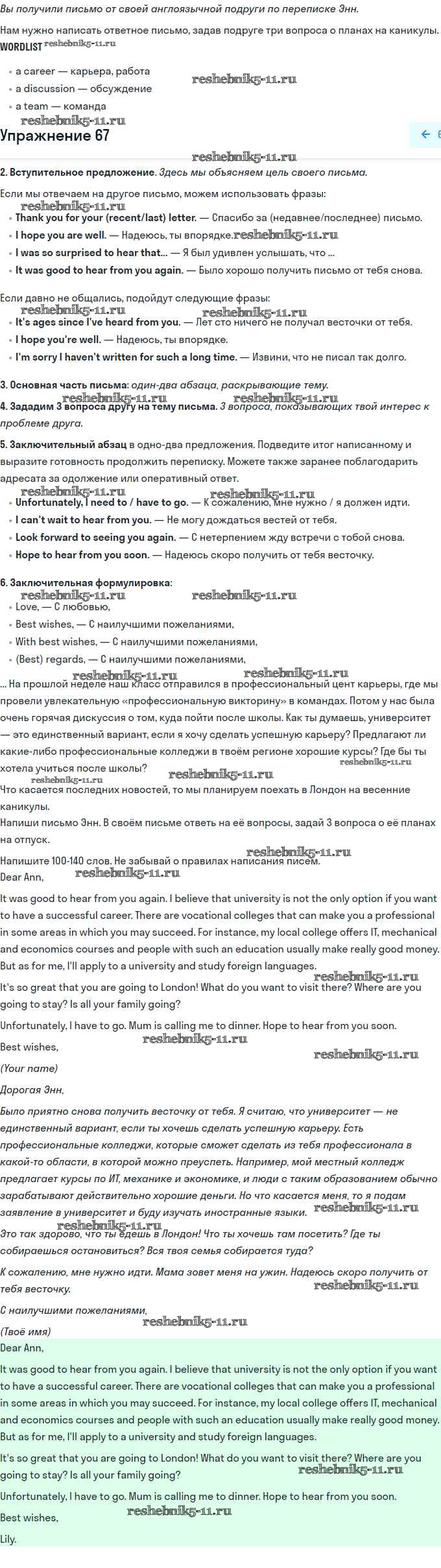 Готовая домашняя работа с ответами по Английскому языку за 11 класс Биболетова, Бабушис, Снежко Учебник Enjoy English Дрофа 2017 ФГОС - Unit 2. Your Dream Job 67