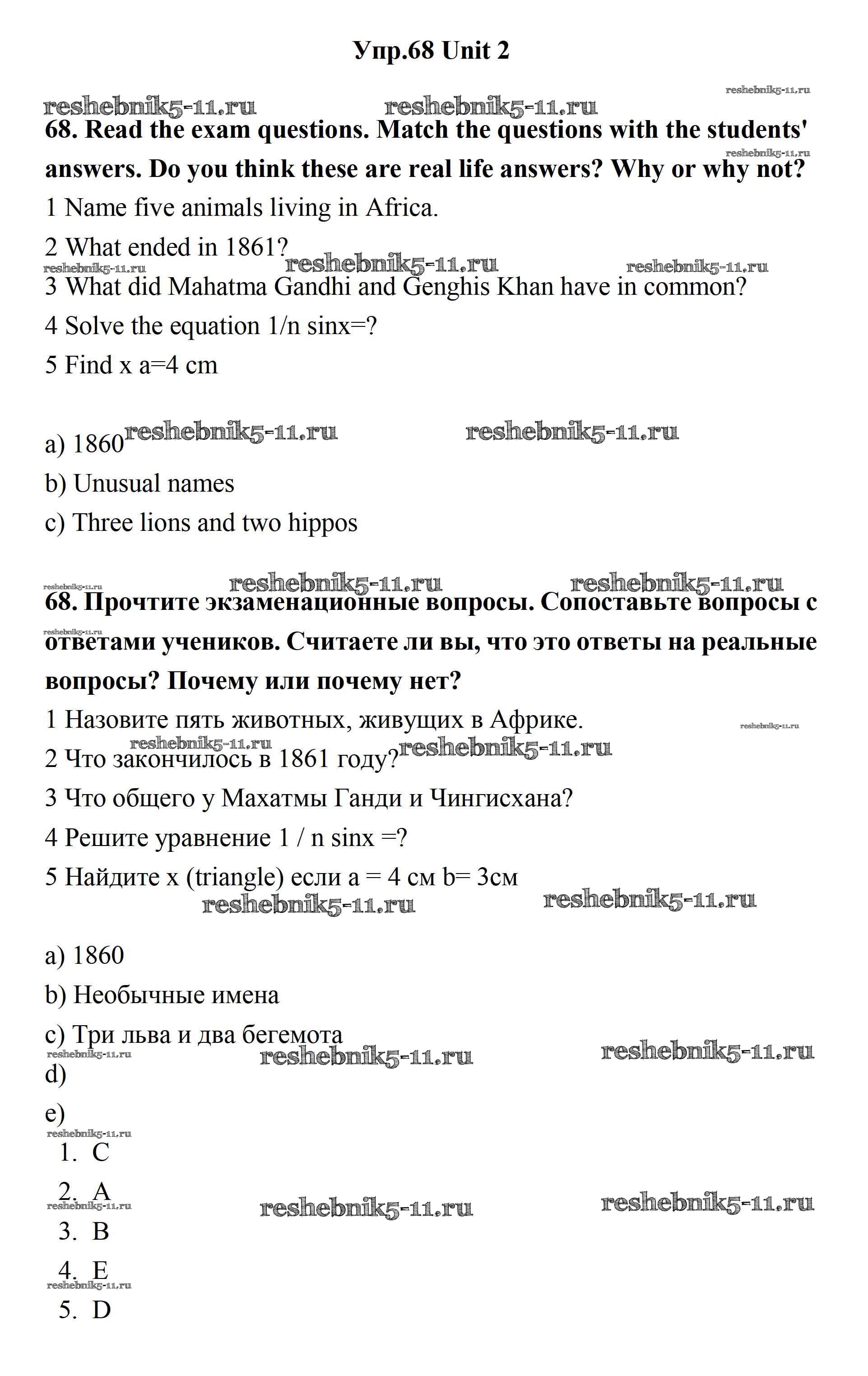 Готовая домашняя работа с ответами по Английскому языку за 11 класс Биболетова, Бабушис, Снежко Учебник Enjoy English Дрофа 2017 ФГОС - Unit 2. Your Dream Job 68