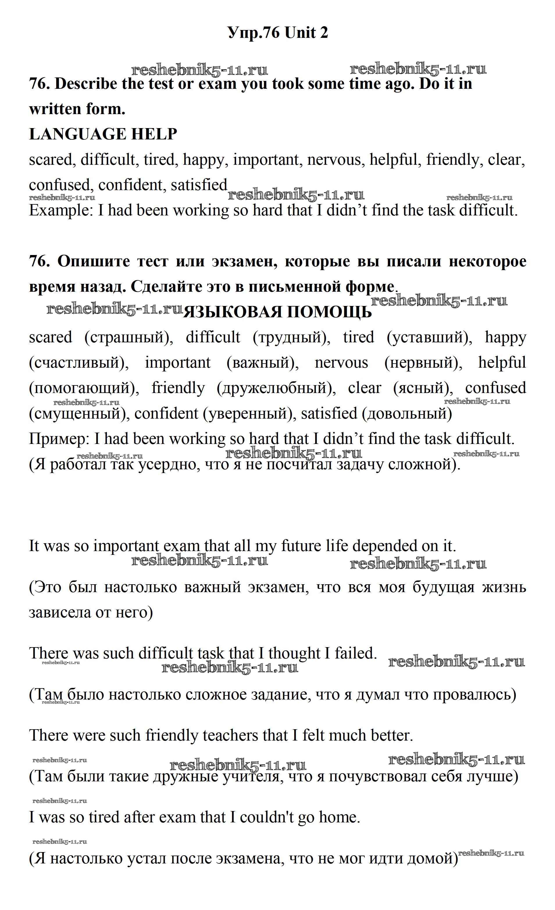 Готовая домашняя работа с ответами по Английскому языку за 11 класс Биболетова, Бабушис, Снежко Учебник Enjoy English Дрофа 2017 ФГОС - Unit 2. Your Dream Job 76