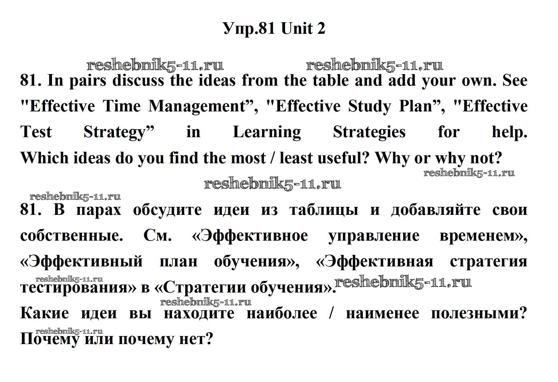 Готовая домашняя работа с ответами по Английскому языку за 11 класс Биболетова, Бабушис, Снежко Учебник Enjoy English Дрофа 2017 ФГОС - Unit 2. Your Dream Job 81