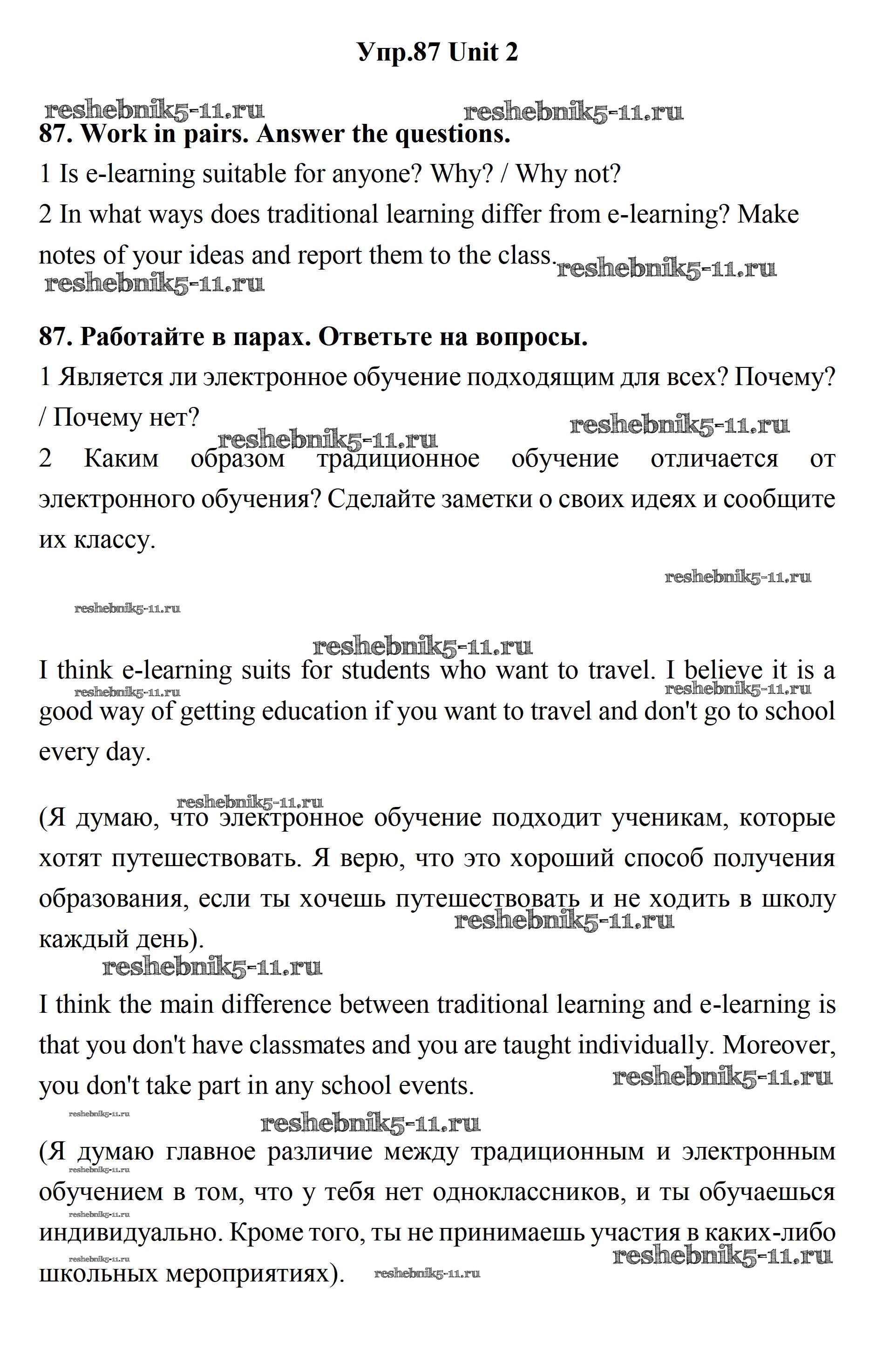Готовая домашняя работа с ответами по Английскому языку за 11 класс Биболетова, Бабушис, Снежко Учебник Enjoy English Дрофа 2017 ФГОС - Unit 2. Your Dream Job 87