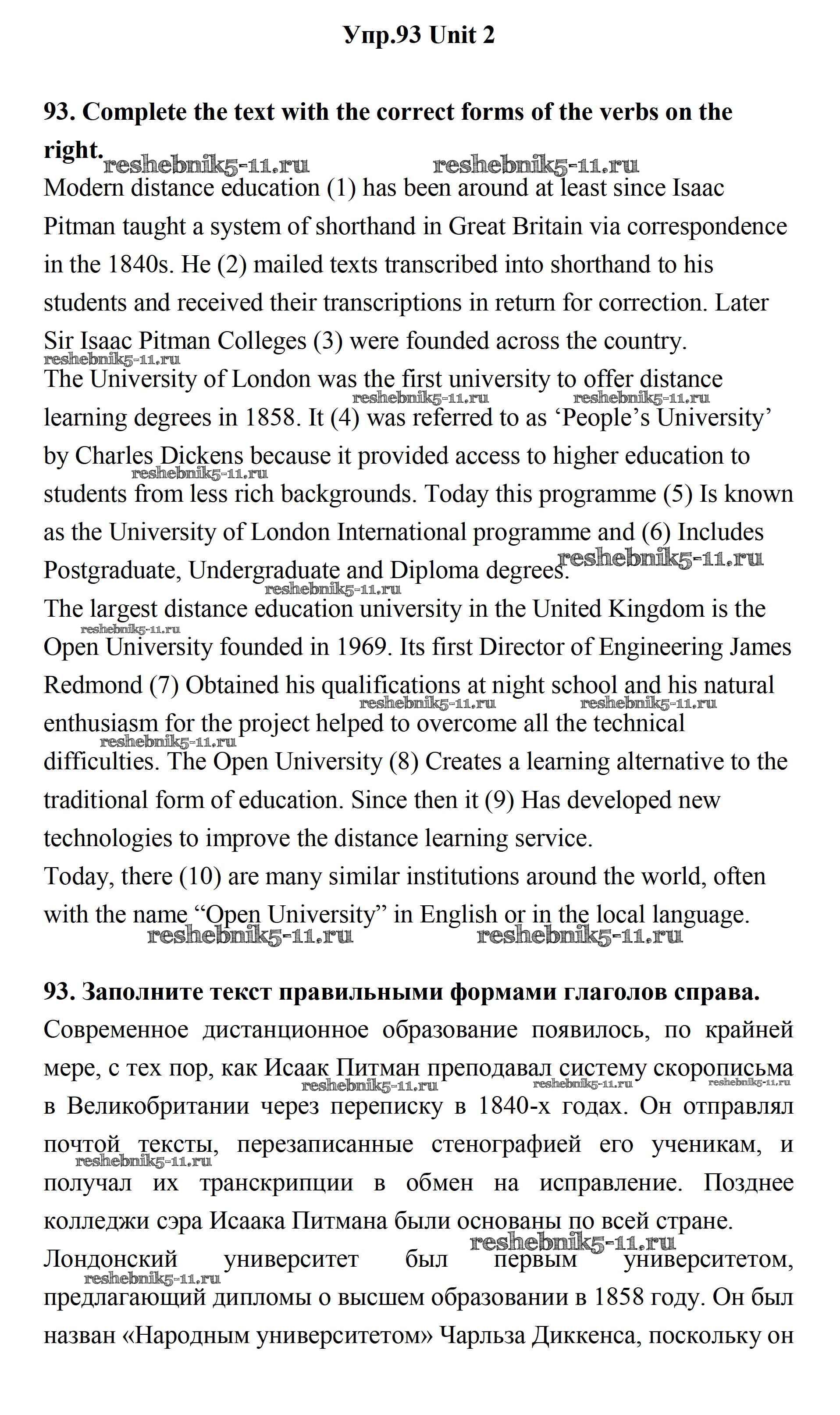 Готовая домашняя работа с ответами по Английскому языку за 11 класс Биболетова, Бабушис, Снежко Учебник Enjoy English Дрофа 2017 ФГОС - Unit 2. Your Dream Job 93