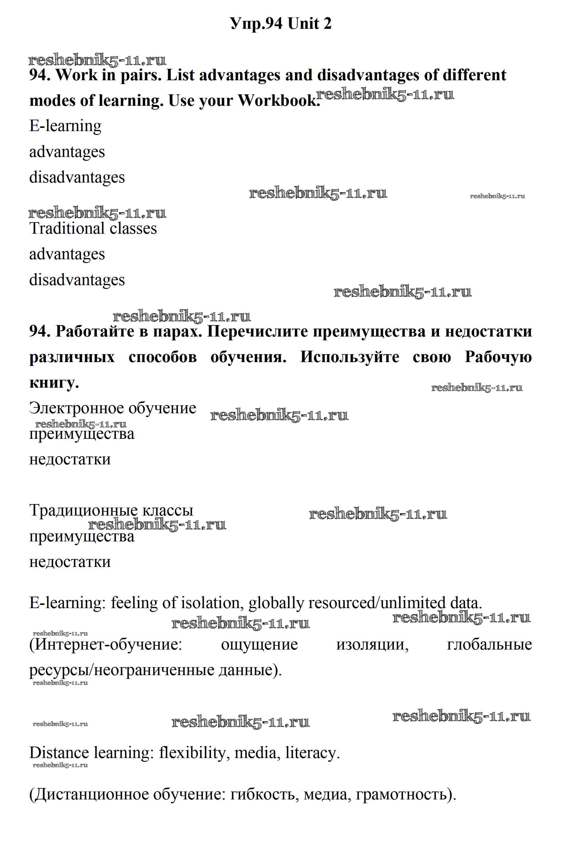 Готовая домашняя работа с ответами по Английскому языку за 11 класс Биболетова, Бабушис, Снежко Учебник Enjoy English Дрофа 2017 ФГОС - Unit 2. Your Dream Job 94