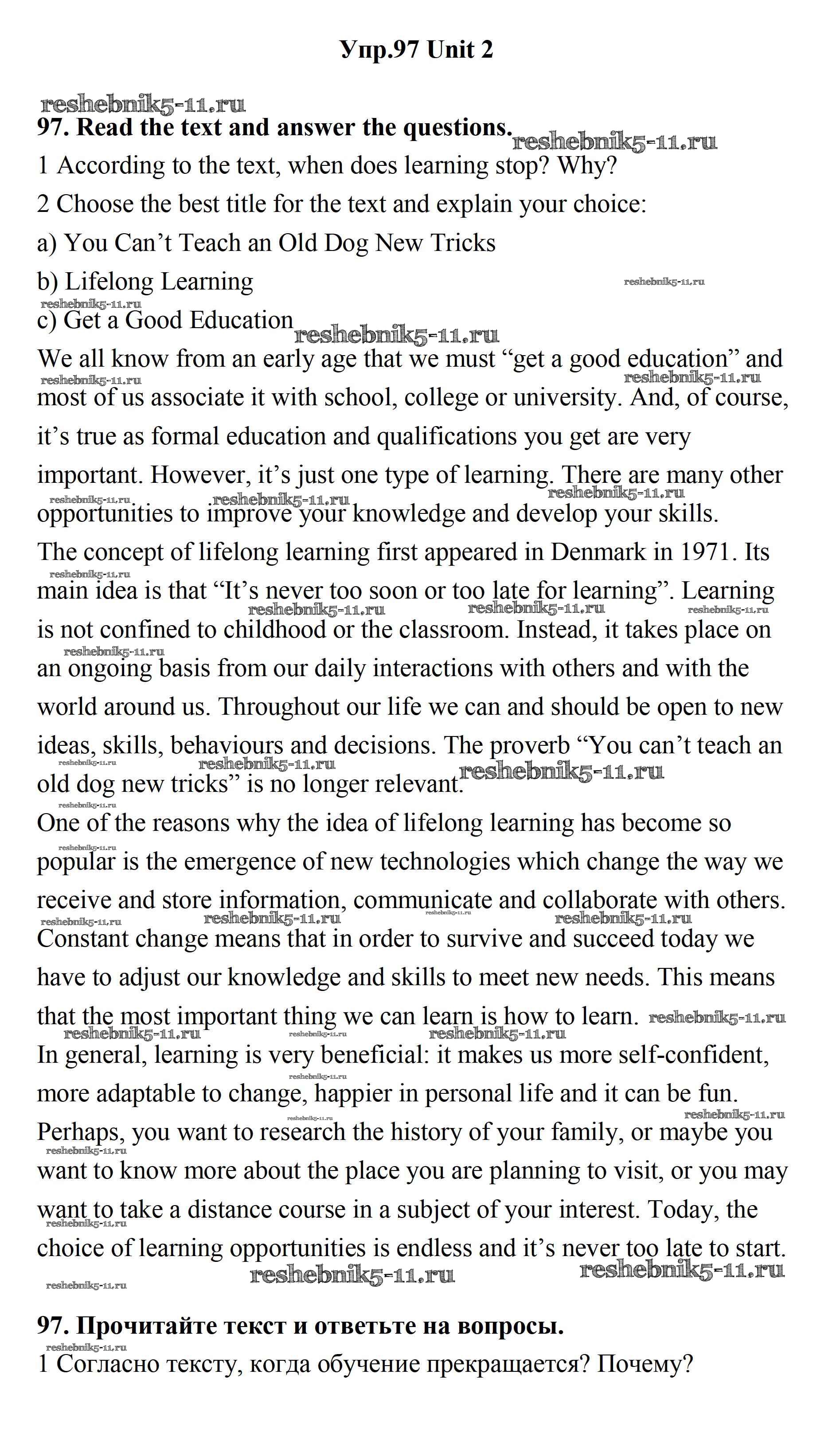 Готовая домашняя работа с ответами по Английскому языку за 11 класс Биболетова, Бабушис, Снежко Учебник Enjoy English Дрофа 2017 ФГОС - Unit 2. Your Dream Job 97