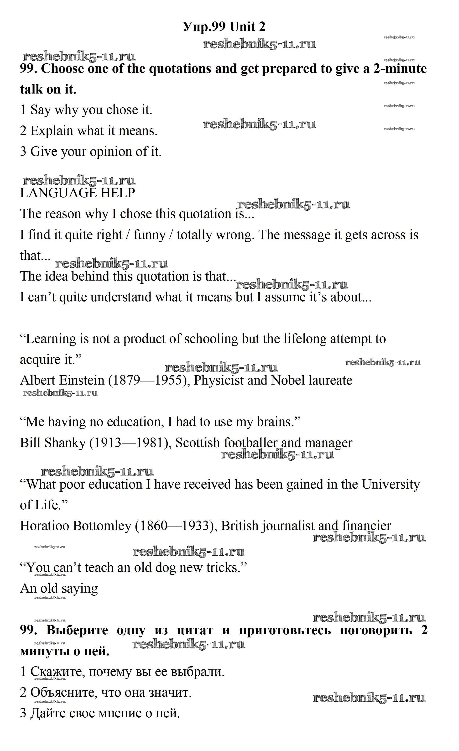 Готовая домашняя работа с ответами по Английскому языку за 11 класс Биболетова, Бабушис, Снежко Учебник Enjoy English Дрофа 2017 ФГОС - Unit 2. Your Dream Job 99