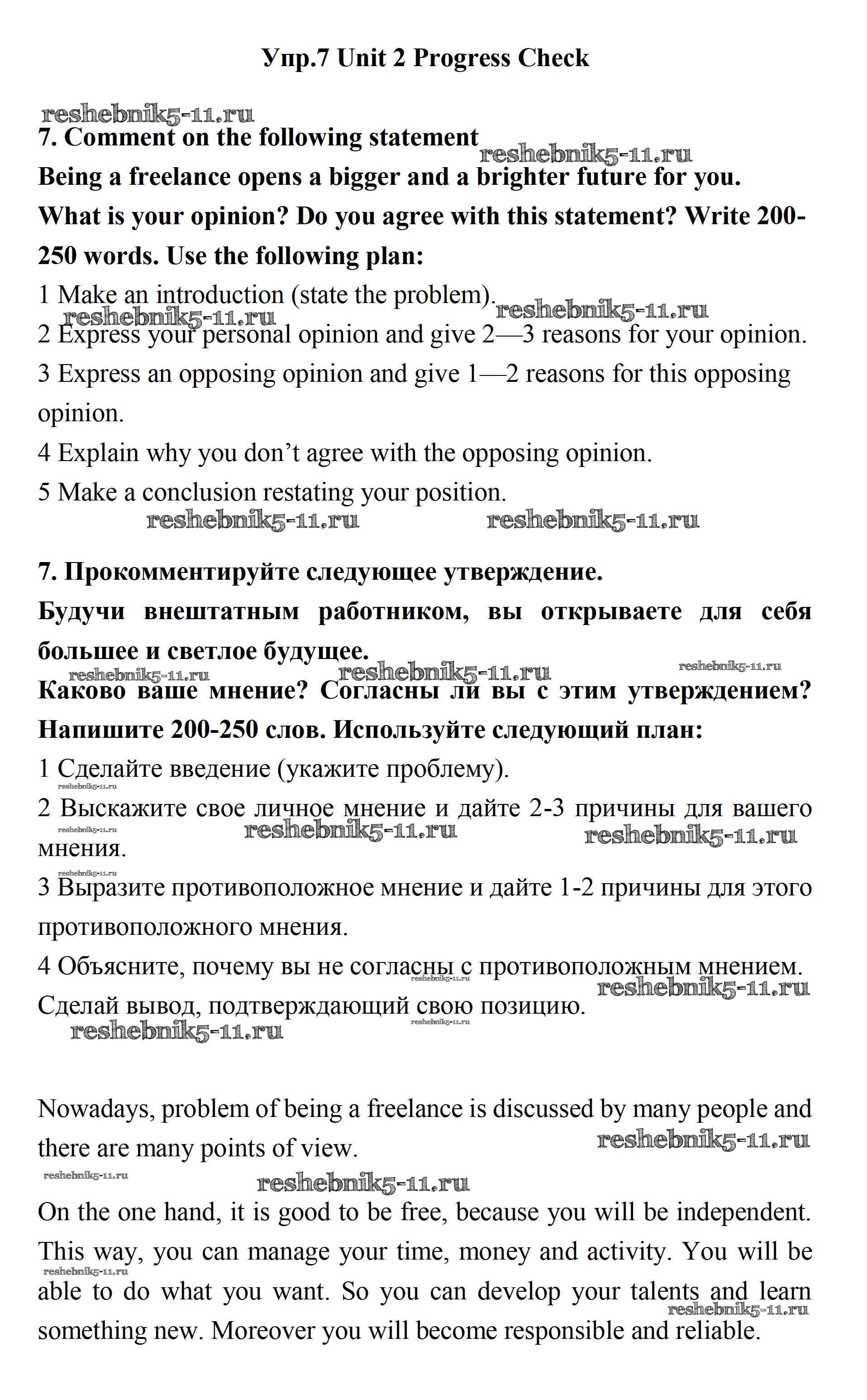 Готовая домашняя работа с ответами по Английскому языку за 11 класс Биболетова, Бабушис, Снежко Учебник Enjoy English Дрофа 2017 ФГОС - Progress Check 7