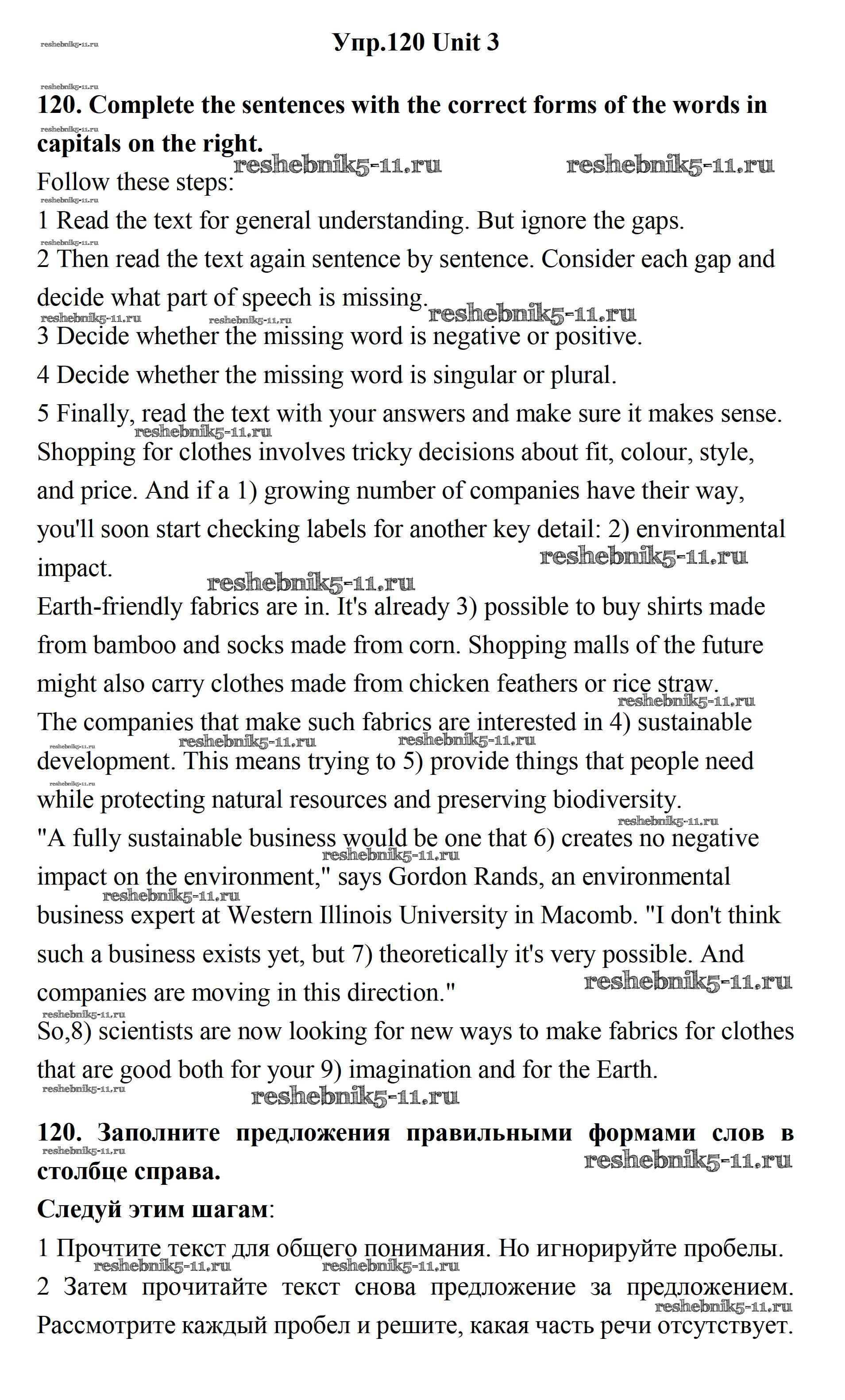 Готовая домашняя работа с ответами по Английскому языку за 11 класс Биболетова, Бабушис, Снежко Учебник Enjoy English Дрофа 2017 ФГОС - Unit 3. New Technological World 120