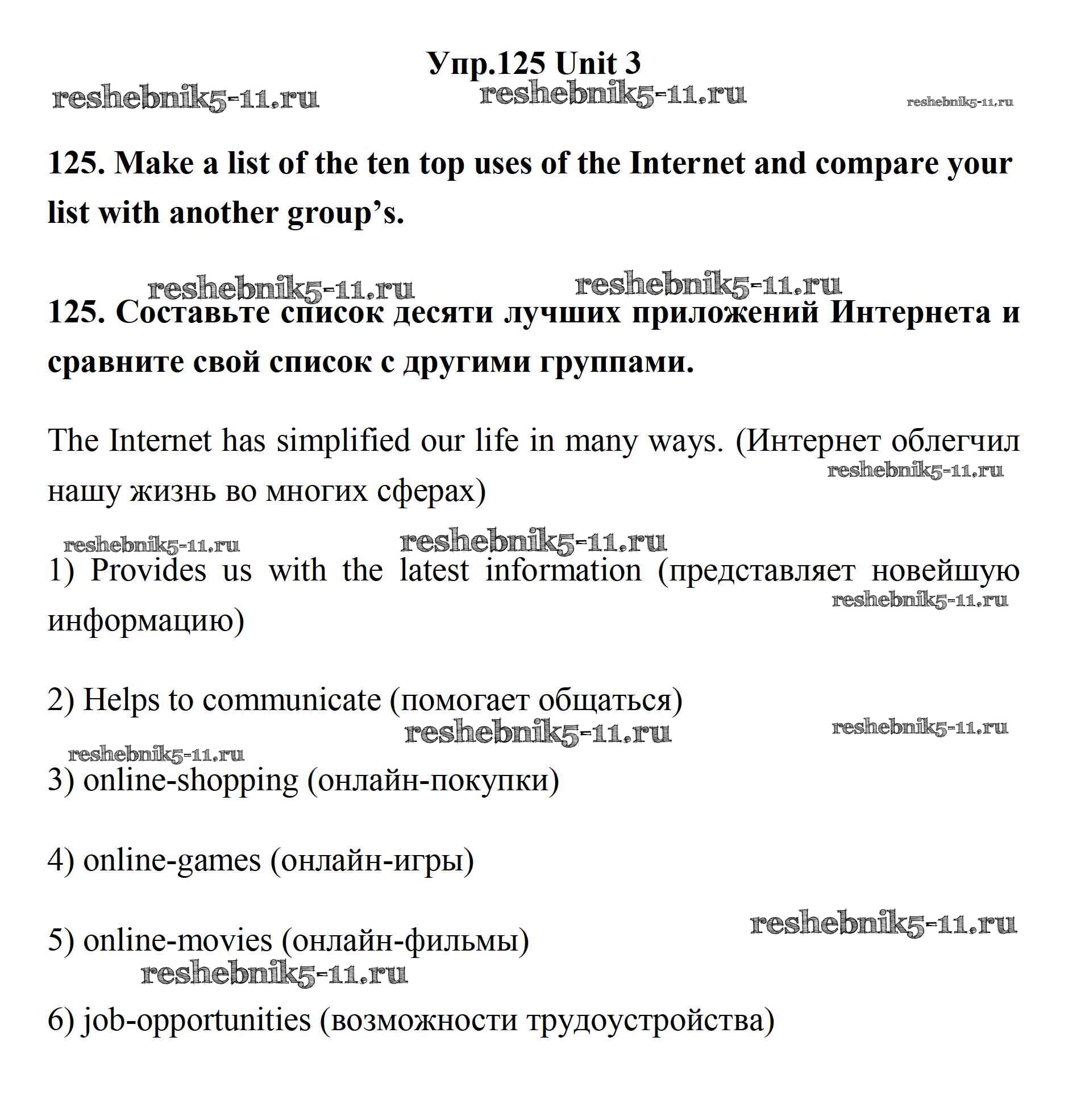 Готовая домашняя работа с ответами по Английскому языку за 11 класс Биболетова, Бабушис, Снежко Учебник Enjoy English Дрофа 2017 ФГОС - Unit 3. New Technological World 125