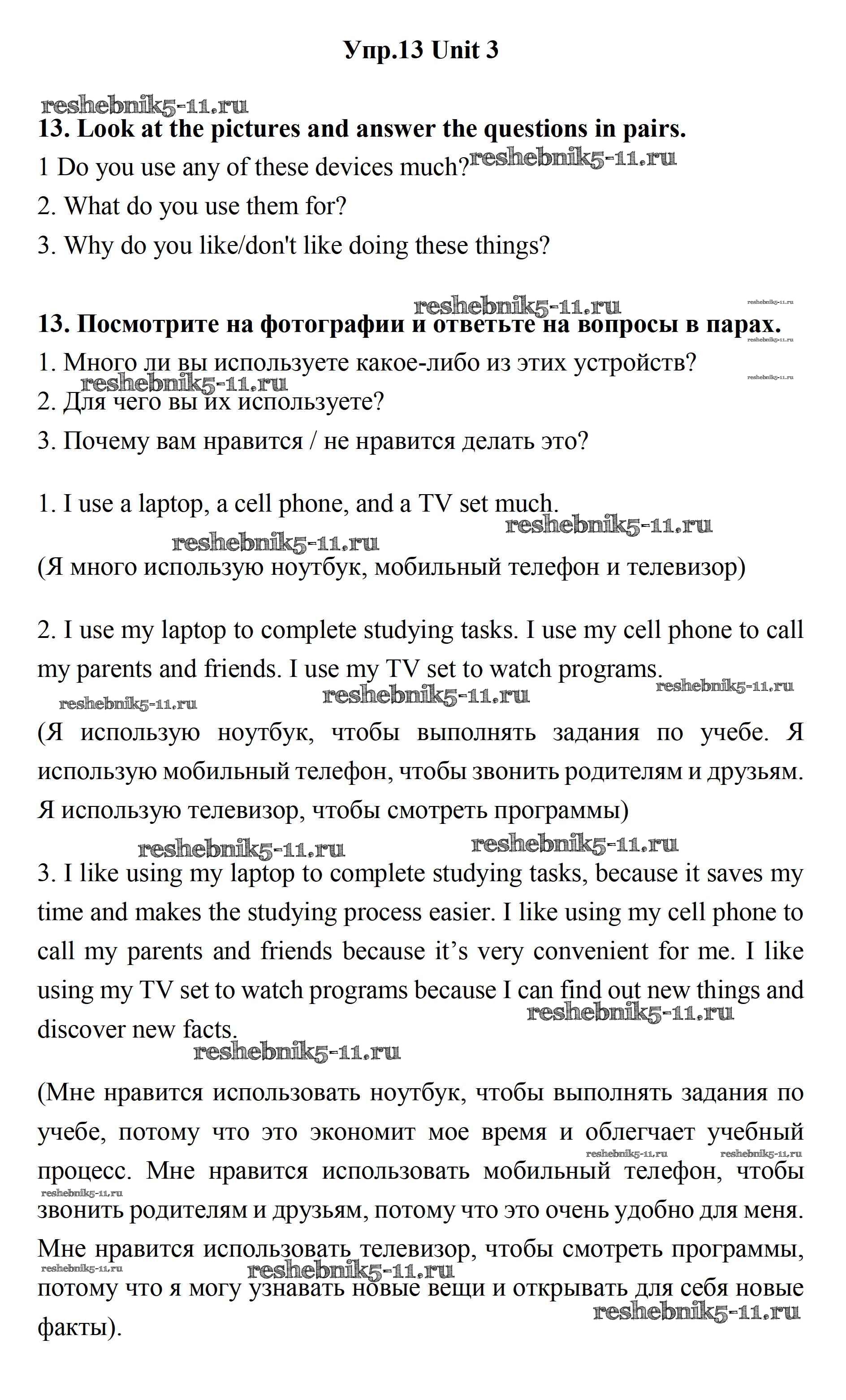 Готовая домашняя работа с ответами по Английскому языку за 11 класс Биболетова, Бабушис, Снежко Учебник Enjoy English Дрофа 2017 ФГОС - Unit 3. New Technological World 13