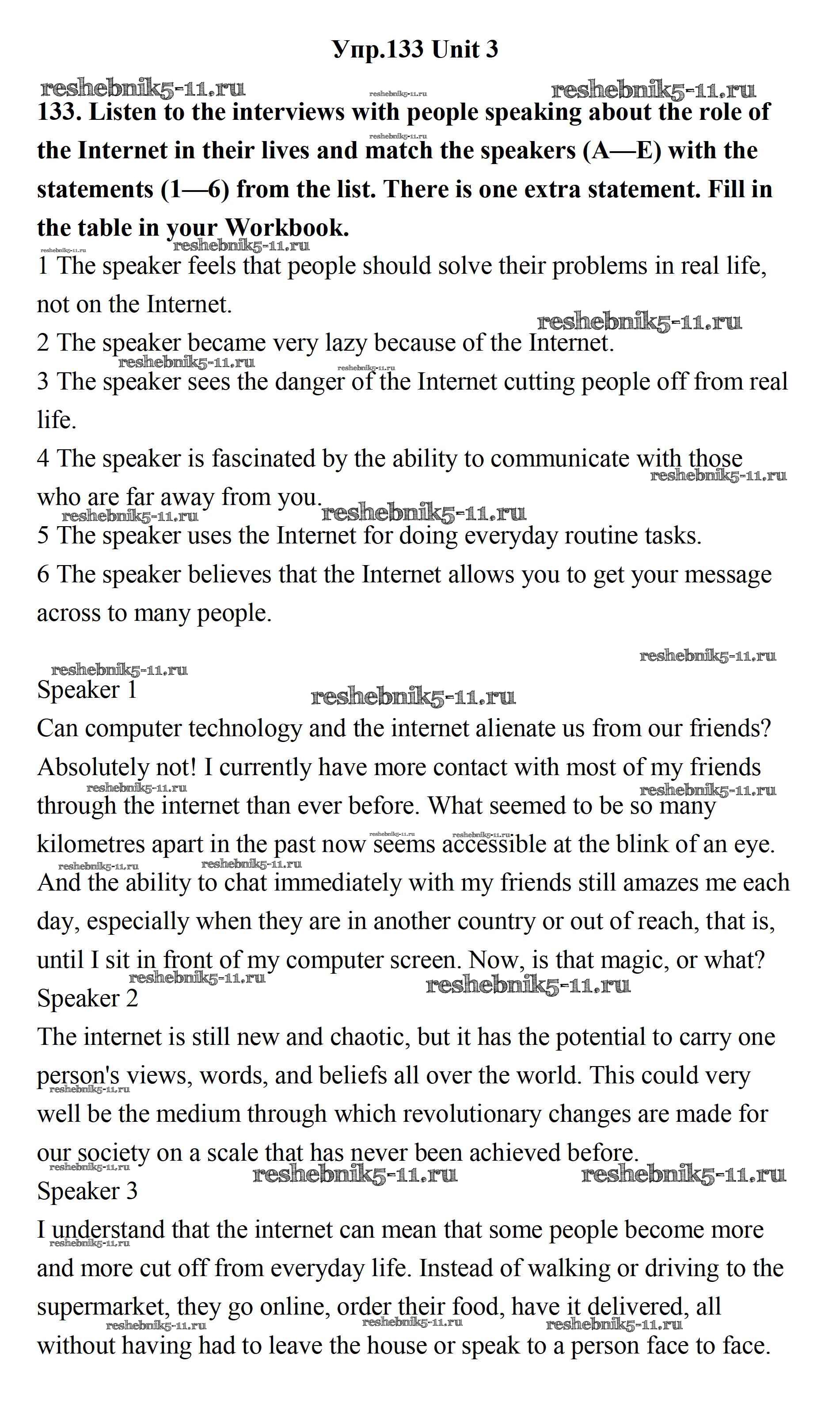 Готовая домашняя работа с ответами по Английскому языку за 11 класс Биболетова, Бабушис, Снежко Учебник Enjoy English Дрофа 2017 ФГОС - Unit 3. New Technological World 133