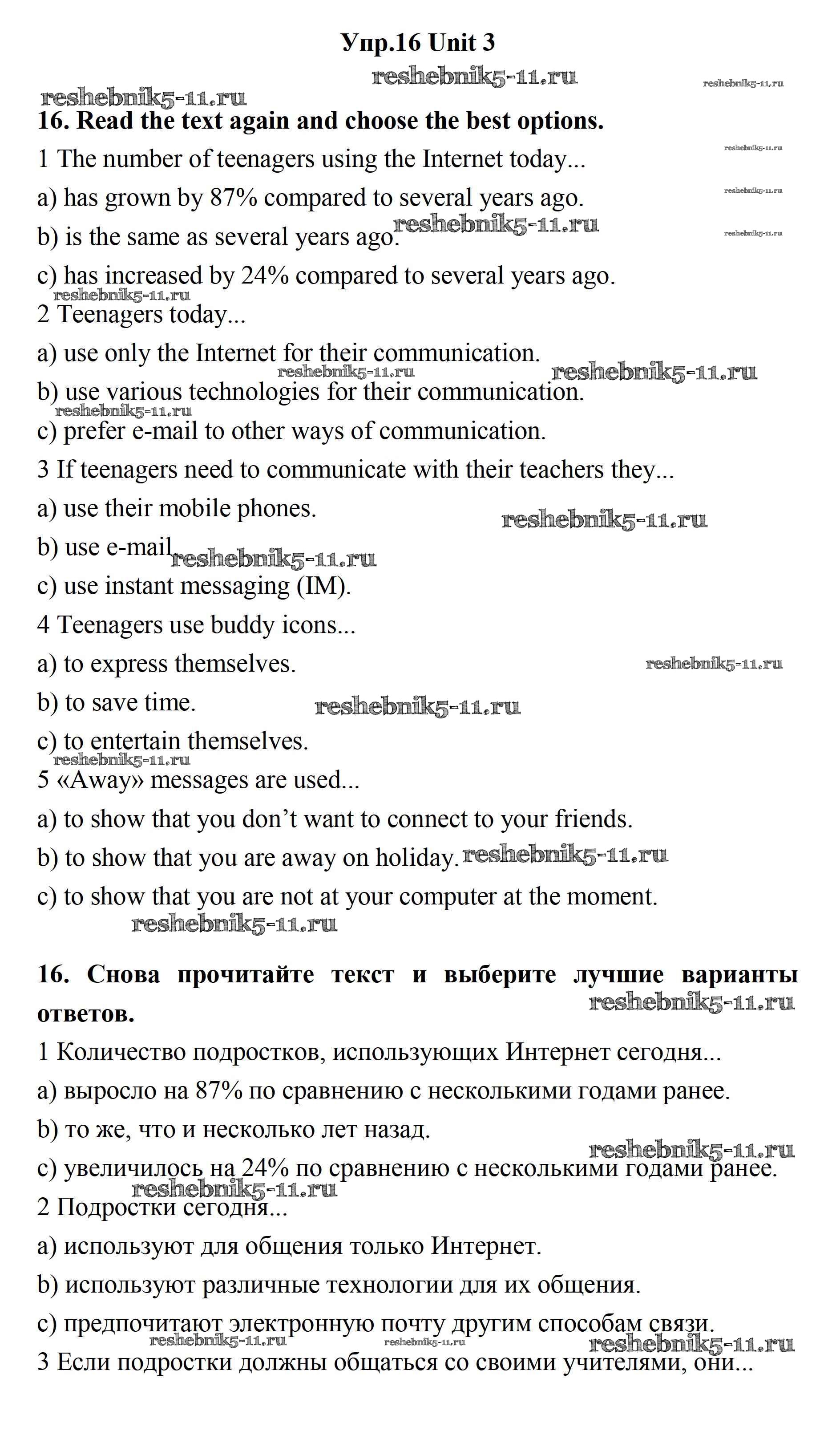 Готовая домашняя работа с ответами по Английскому языку за 11 класс Биболетова, Бабушис, Снежко Учебник Enjoy English Дрофа 2017 ФГОС - Unit 3. New Technological World 16