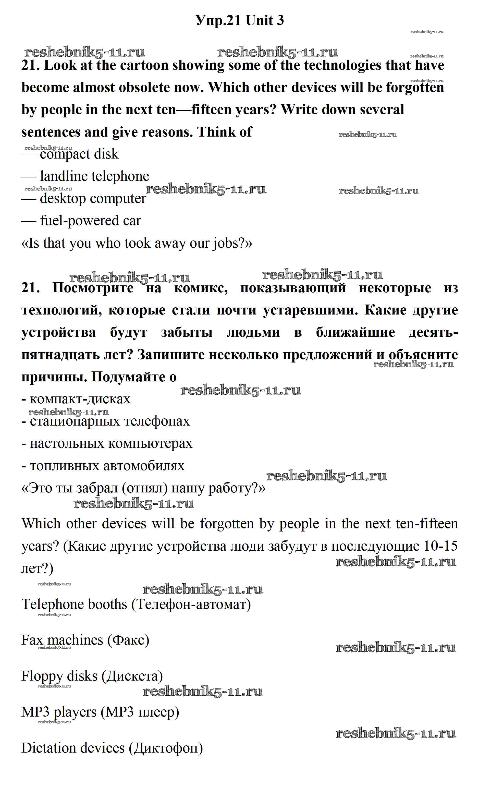 Готовая домашняя работа с ответами по Английскому языку за 11 класс Биболетова, Бабушис, Снежко Учебник Enjoy English Дрофа 2017 ФГОС - Unit 3. New Technological World 21