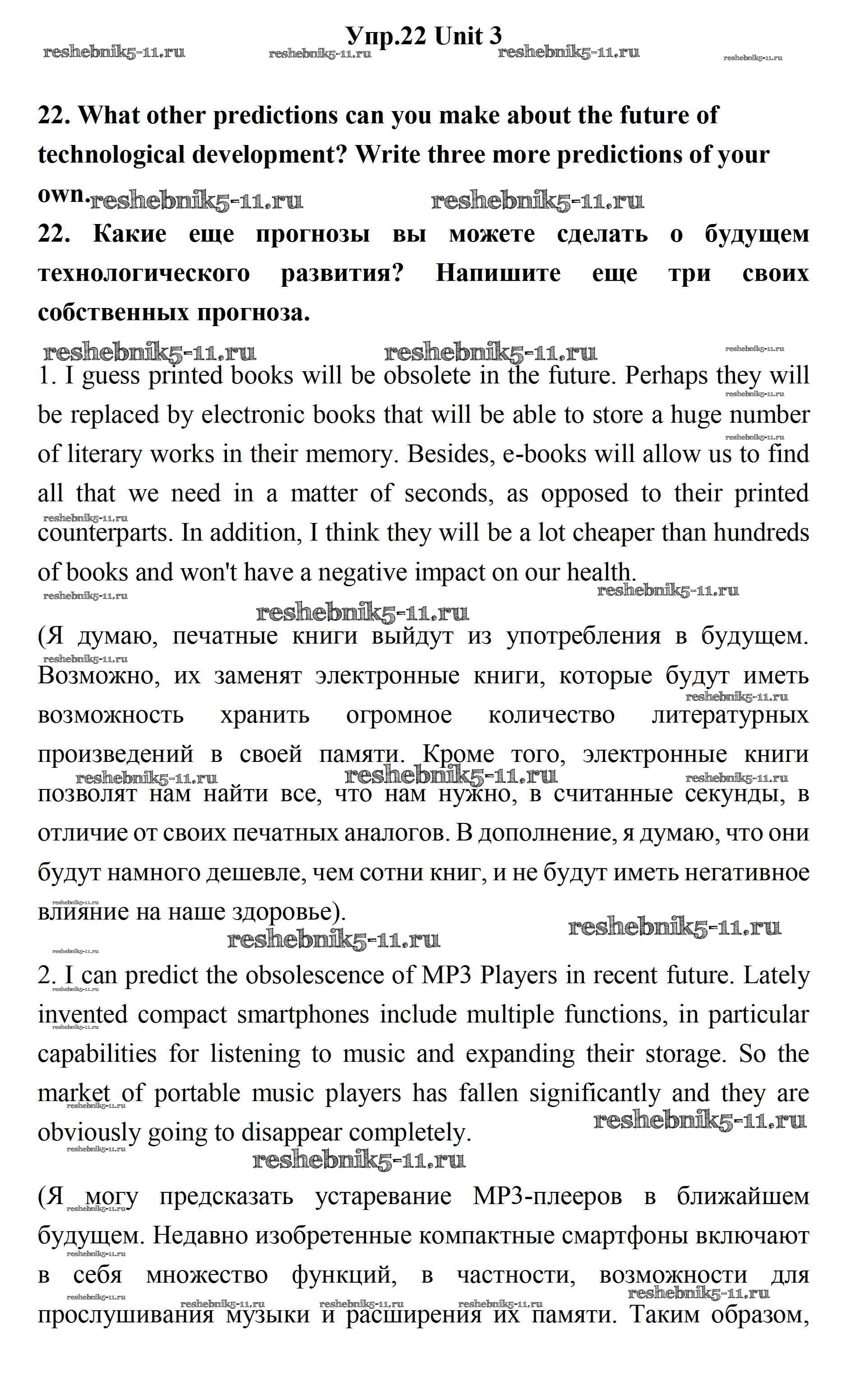 Готовая домашняя работа с ответами по Английскому языку за 11 класс Биболетова, Бабушис, Снежко Учебник Enjoy English Дрофа 2017 ФГОС - Unit 3. New Technological World 22