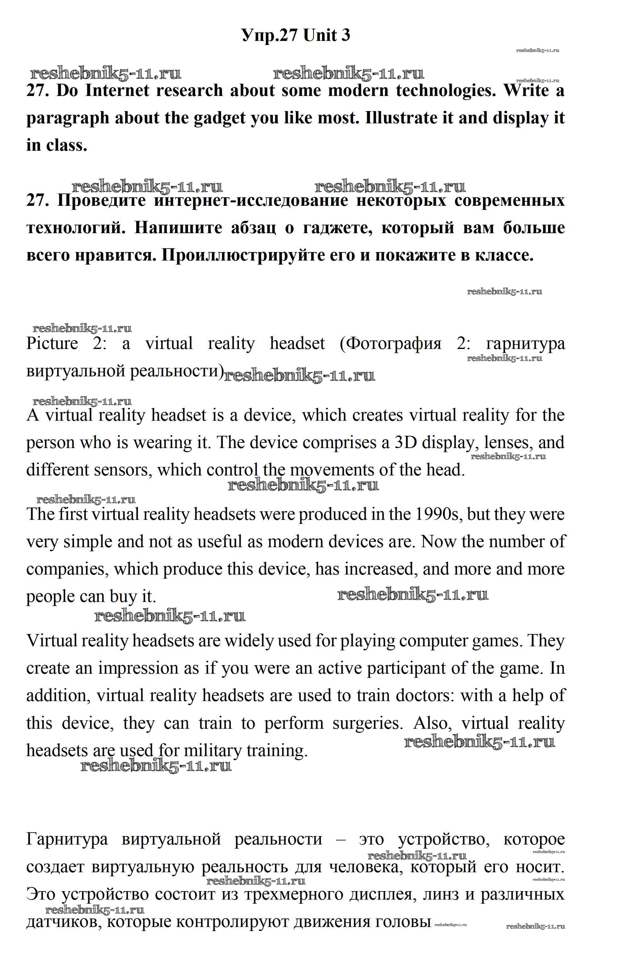 Готовая домашняя работа с ответами по Английскому языку за 11 класс Биболетова, Бабушис, Снежко Учебник Enjoy English Дрофа 2017 ФГОС - Unit 3. New Technological World 27