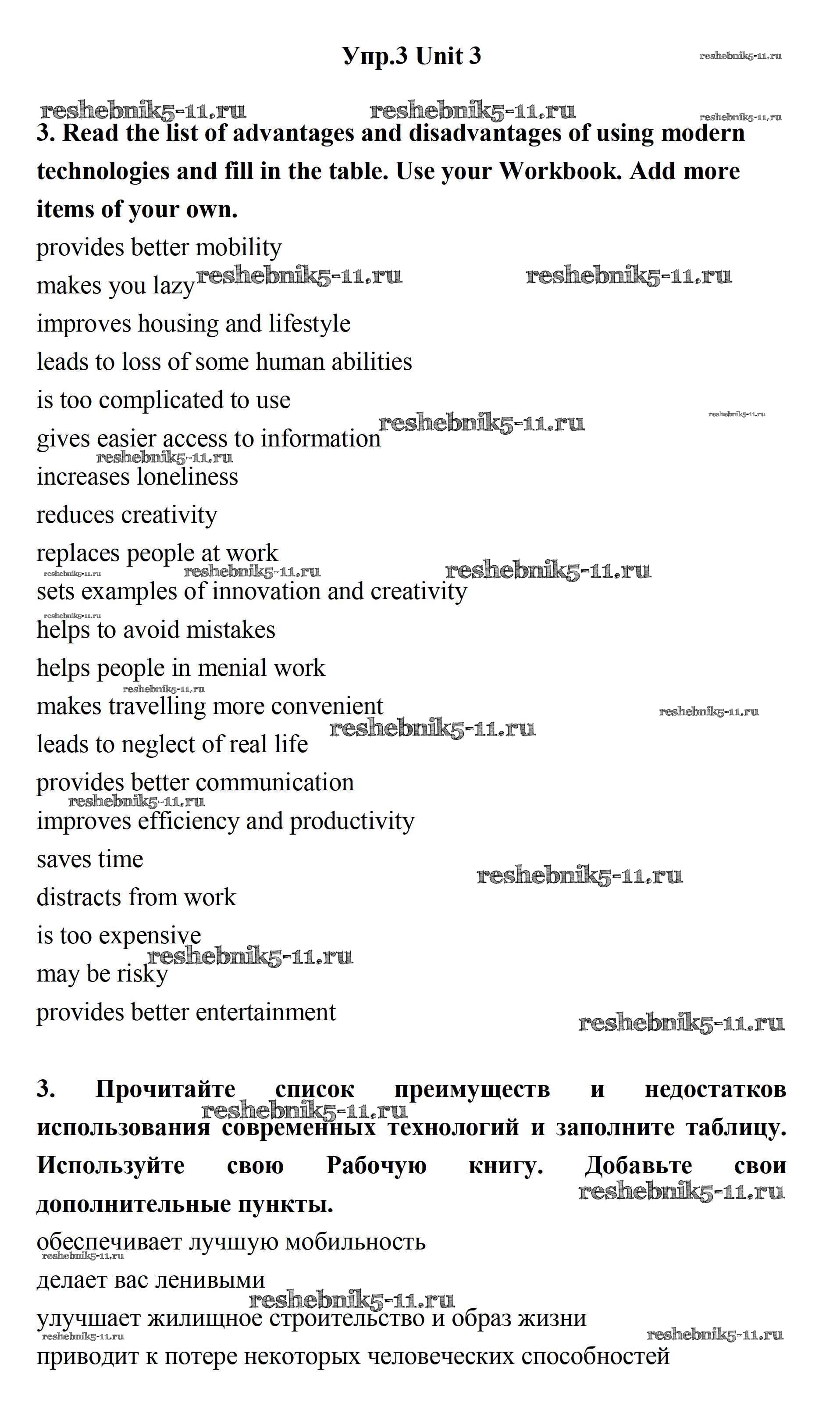 Готовая домашняя работа с ответами по Английскому языку за 11 класс Биболетова, Бабушис, Снежко Учебник Enjoy English Дрофа 2017 ФГОС - Unit 3. New Technological World 3
