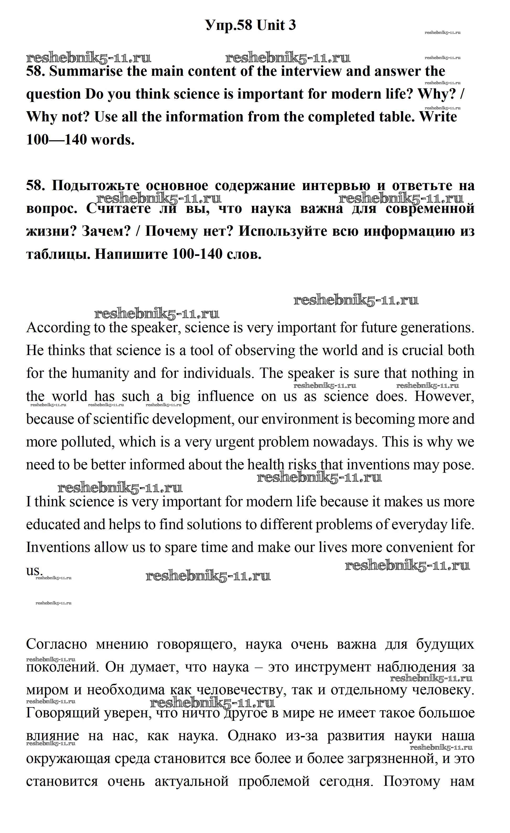 Готовая домашняя работа с ответами по Английскому языку за 11 класс Биболетова, Бабушис, Снежко Учебник Enjoy English Дрофа 2017 ФГОС - Unit 3. New Technological World 58