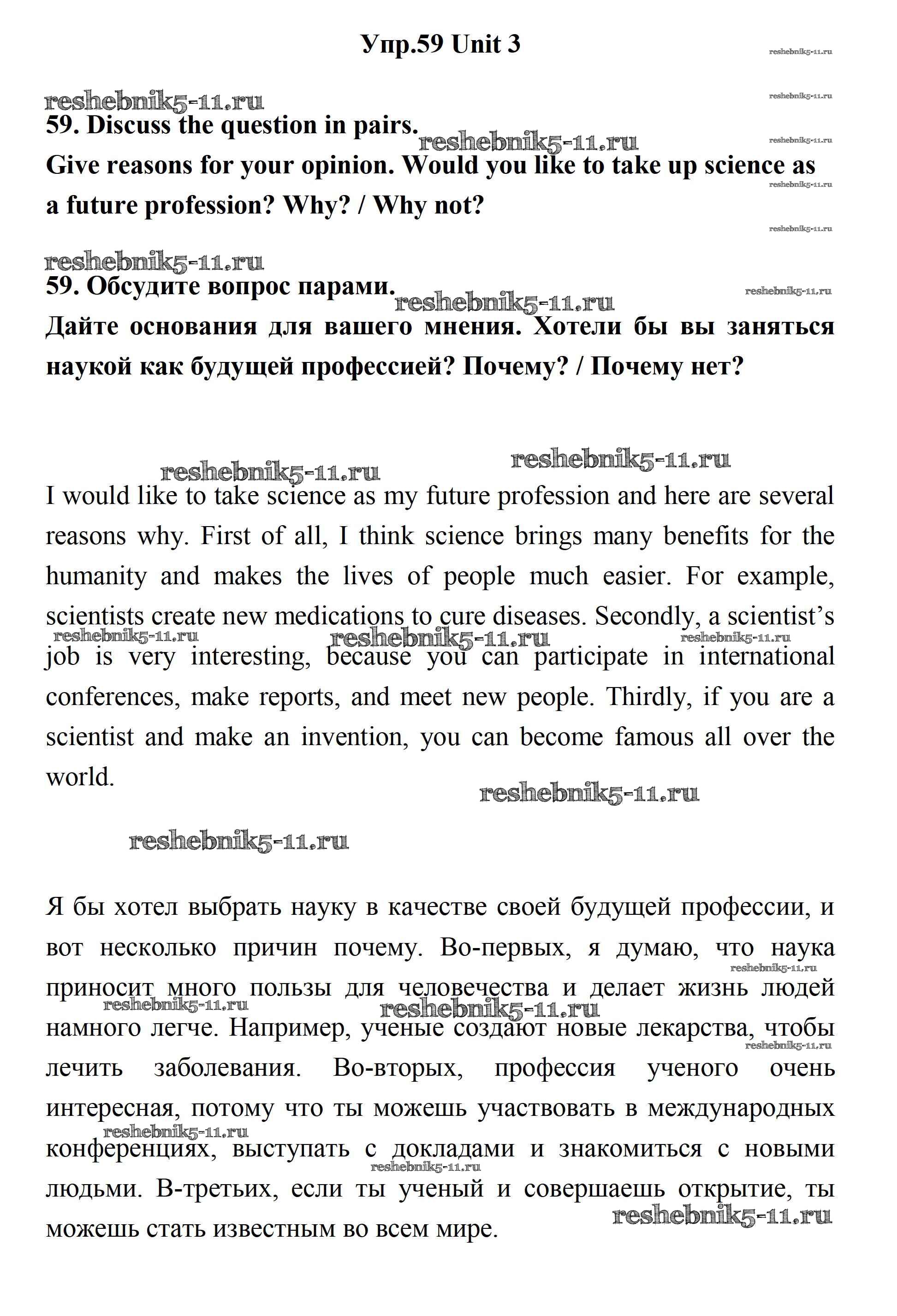 Готовая домашняя работа с ответами по Английскому языку за 11 класс Биболетова, Бабушис, Снежко Учебник Enjoy English Дрофа 2017 ФГОС - Unit 3. New Technological World 59