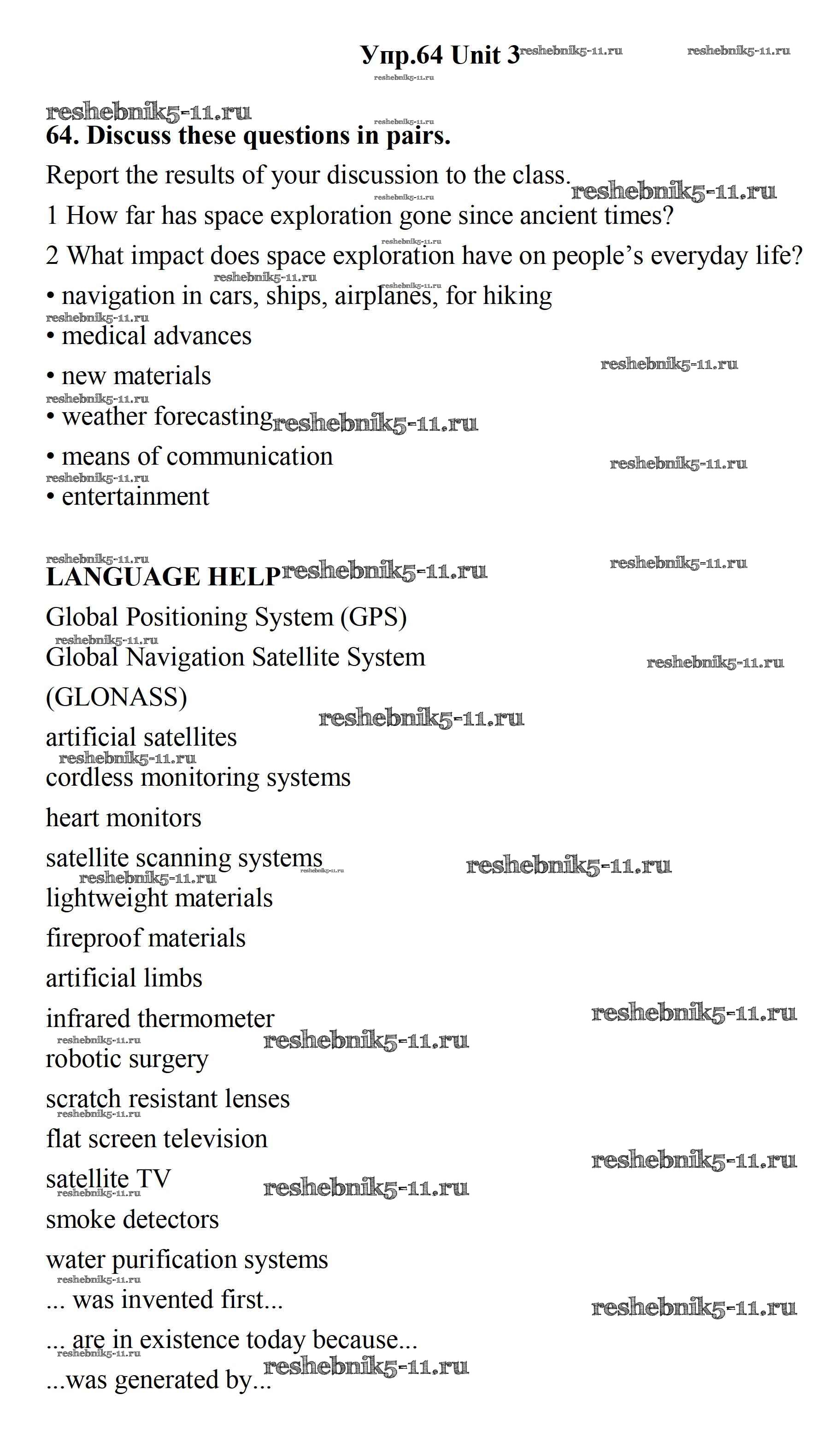 Готовая домашняя работа с ответами по Английскому языку за 11 класс Биболетова, Бабушис, Снежко Учебник Enjoy English Дрофа 2017 ФГОС - Unit 3. New Technological World 64