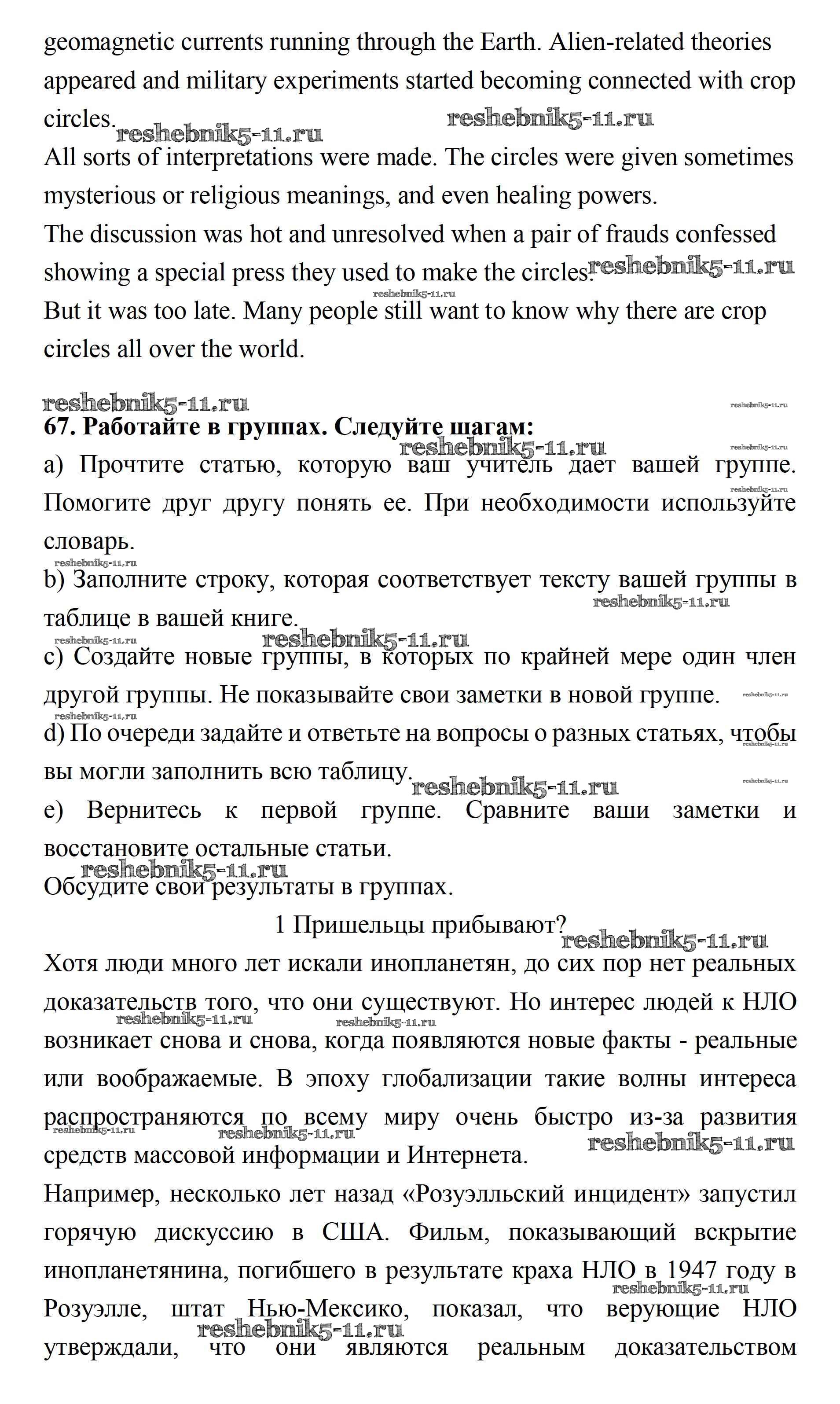 Готовая домашняя работа с ответами по Английскому языку за 11 класс Биболетова, Бабушис, Снежко Учебник Enjoy English Дрофа 2017 ФГОС - Unit 3. New Technological World 67