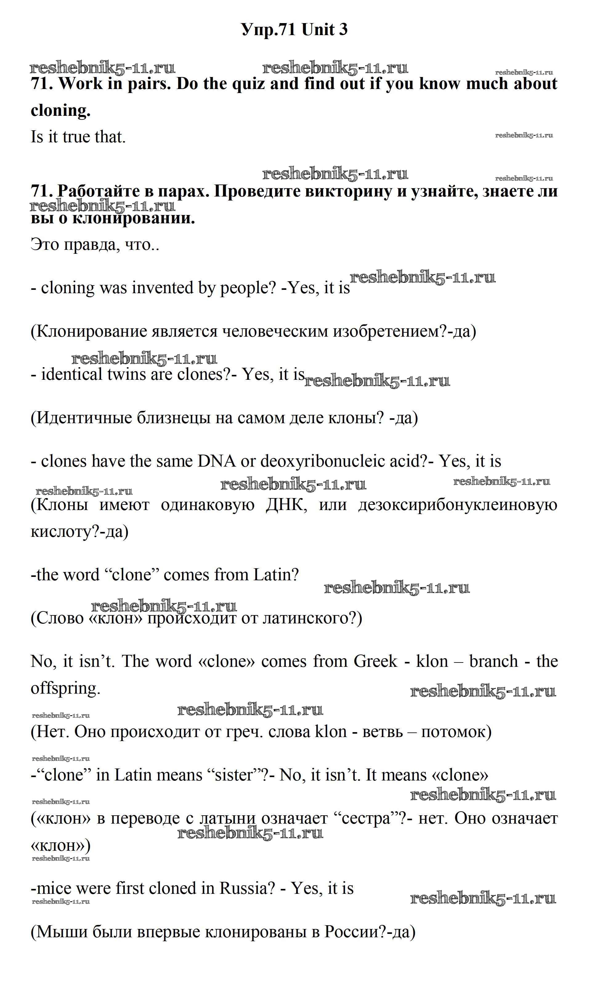 Готовая домашняя работа с ответами по Английскому языку за 11 класс Биболетова, Бабушис, Снежко Учебник Enjoy English Дрофа 2017 ФГОС - Unit 3. New Technological World 71