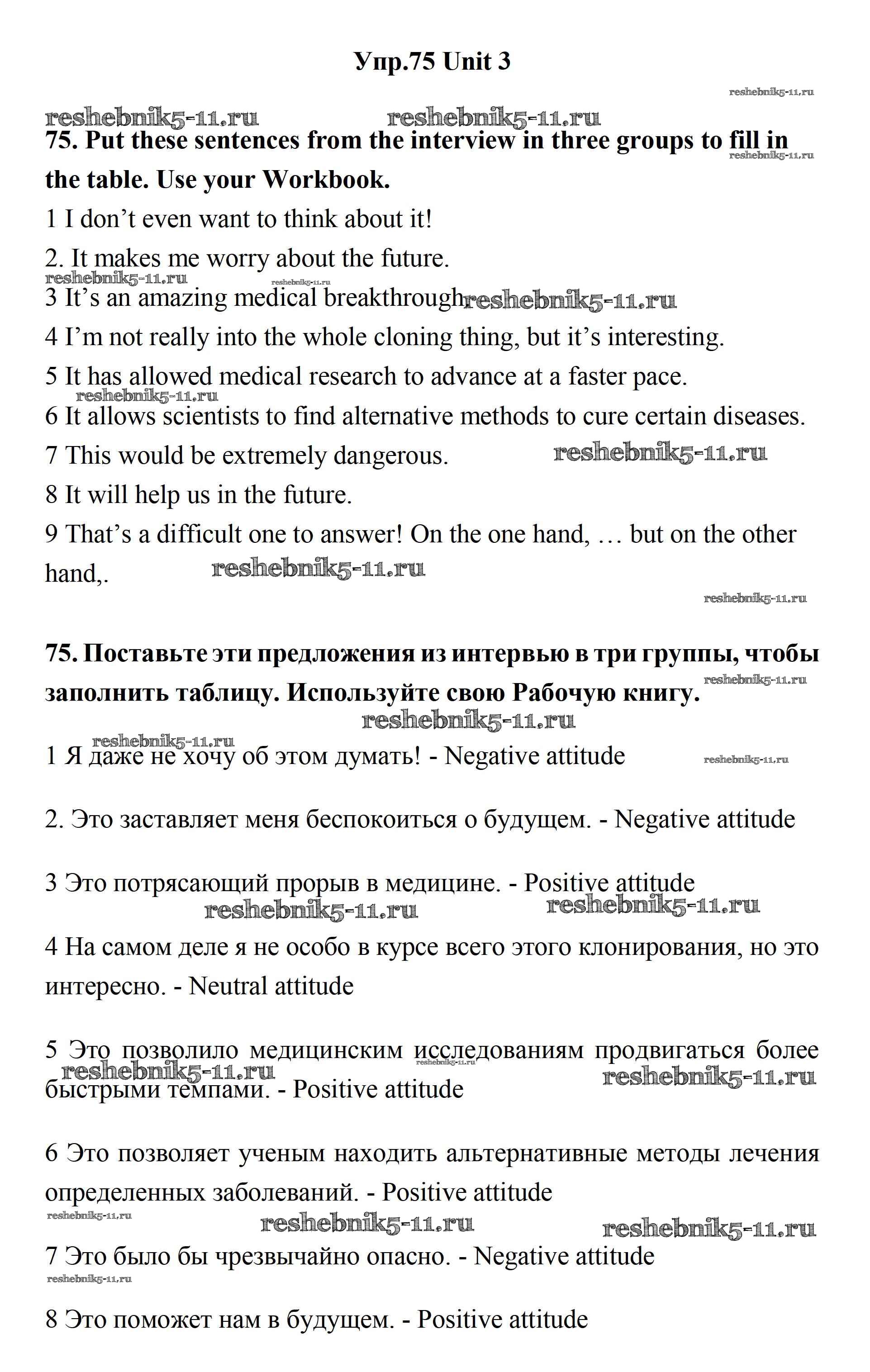 Готовая домашняя работа с ответами по Английскому языку за 11 класс Биболетова, Бабушис, Снежко Учебник Enjoy English Дрофа 2017 ФГОС - Unit 3. New Technological World 75