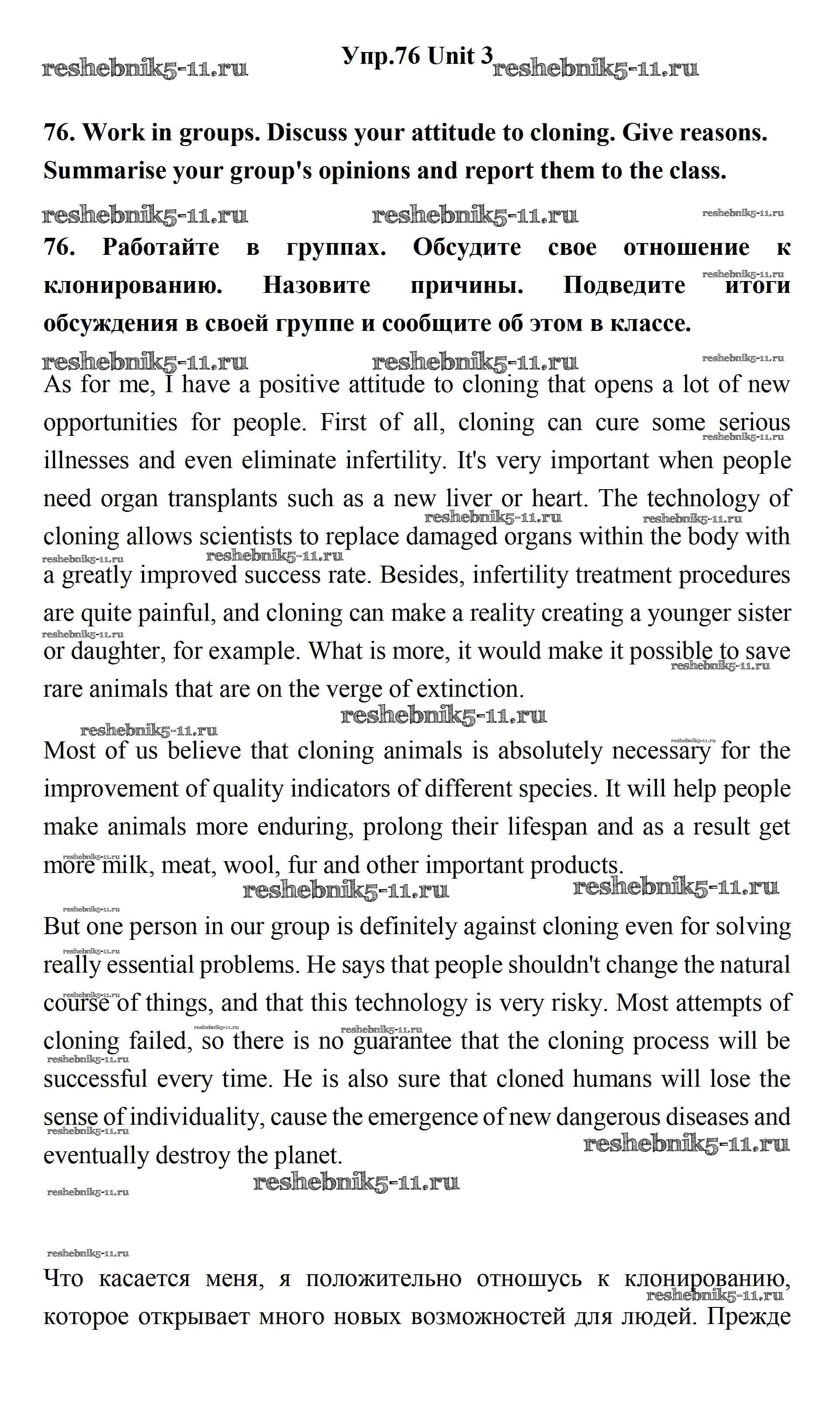 Готовая домашняя работа с ответами по Английскому языку за 11 класс Биболетова, Бабушис, Снежко Учебник Enjoy English Дрофа 2017 ФГОС - Unit 3. New Technological World 76