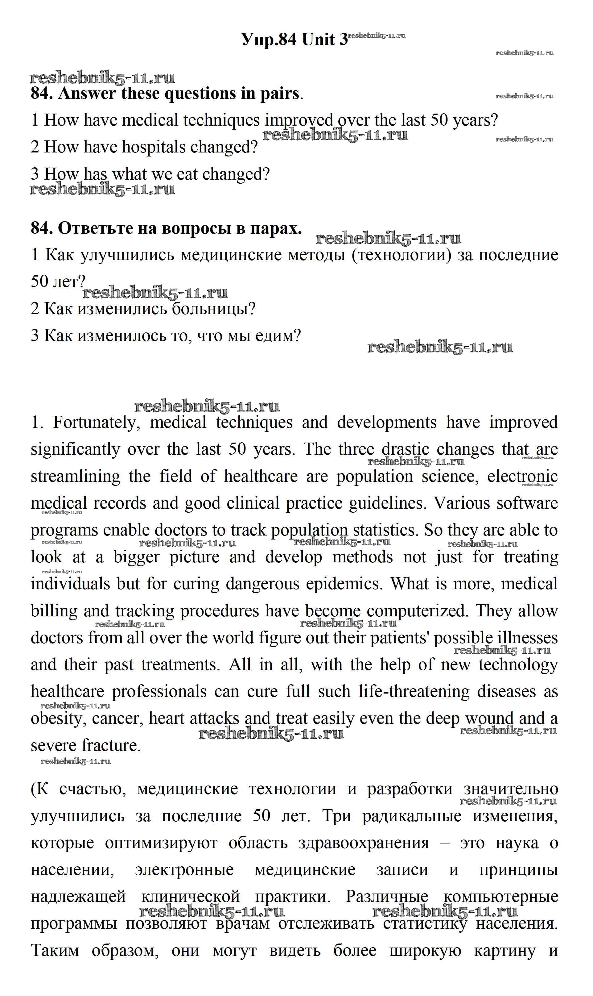 Готовая домашняя работа с ответами по Английскому языку за 11 класс Биболетова, Бабушис, Снежко Учебник Enjoy English Дрофа 2017 ФГОС - Unit 3. New Technological World 84