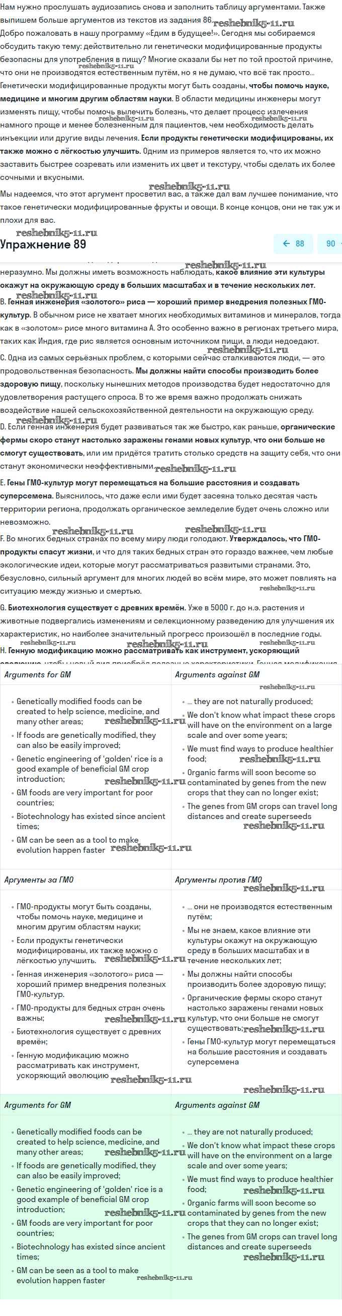 Готовая домашняя работа с ответами по Английскому языку за 11 класс Биболетова, Бабушис, Снежко Учебник Enjoy English Дрофа 2017 ФГОС - Unit 3. New Technological World 89
