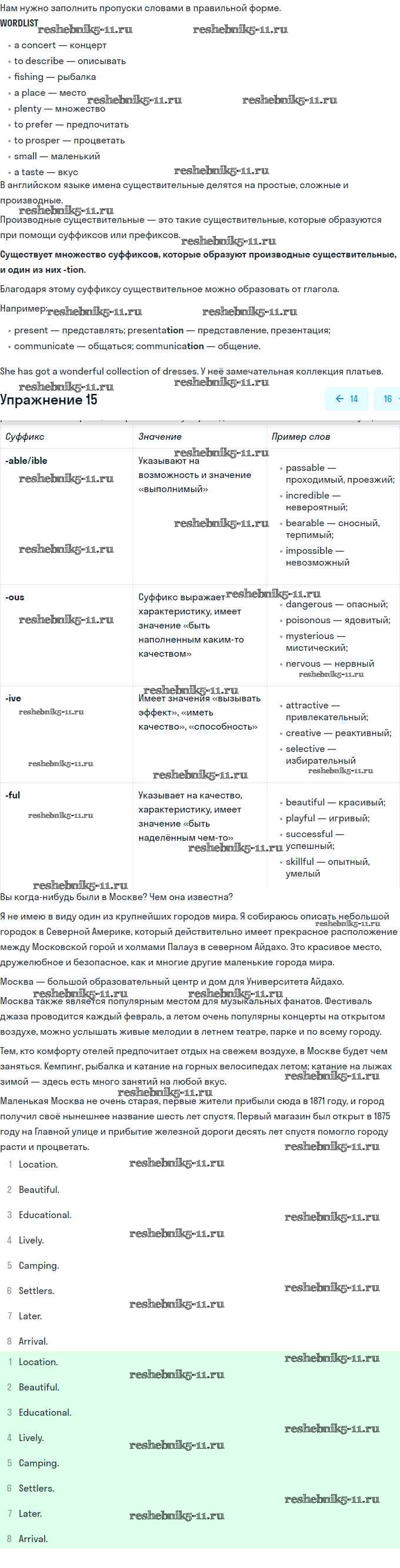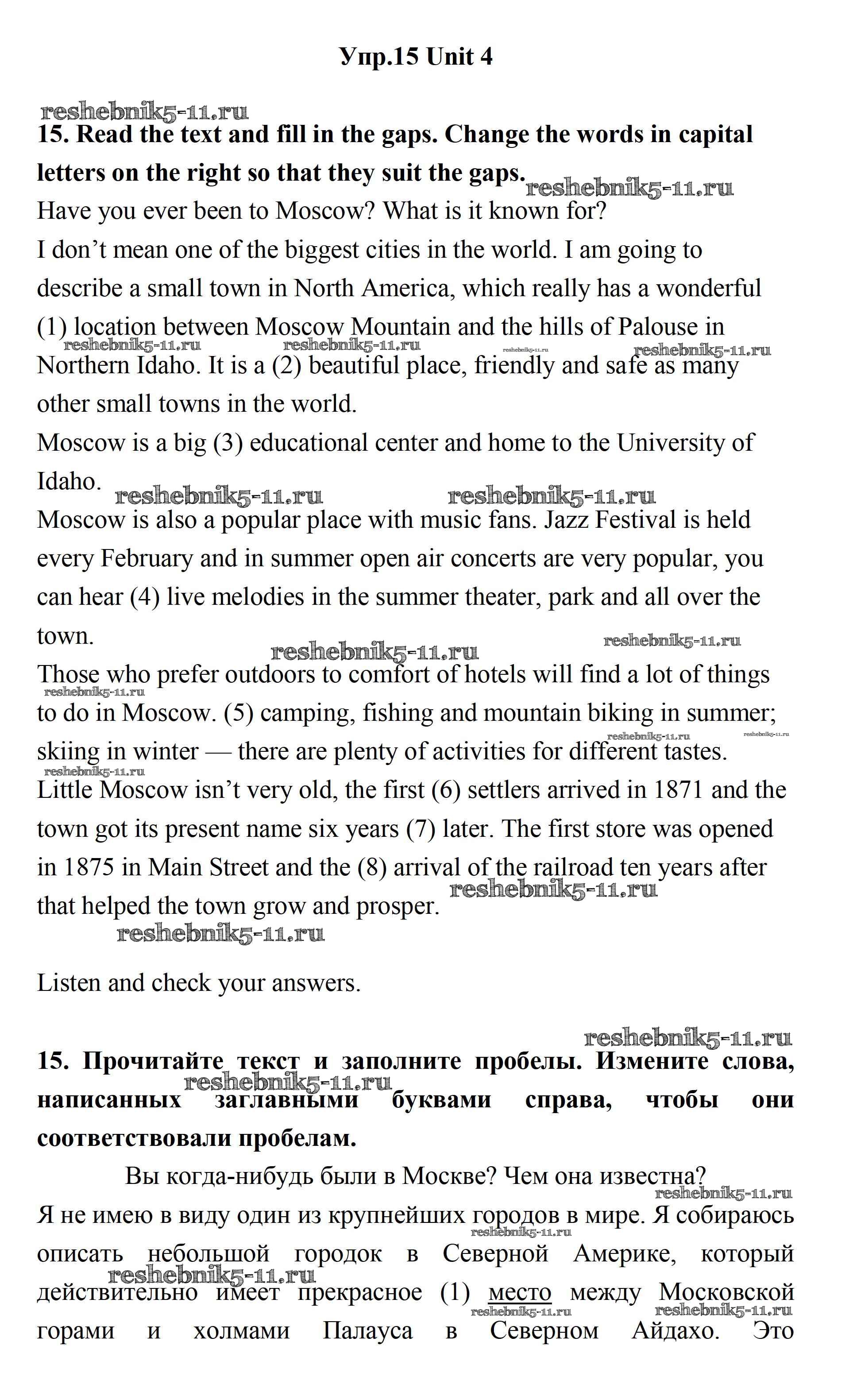 Готовая домашняя работа с ответами по Английскому языку за 11 класс Биболетова, Бабушис, Снежко Учебник Enjoy English Дрофа 2017 ФГОС - Unit 4. What Are Your Whereаbouts? 15