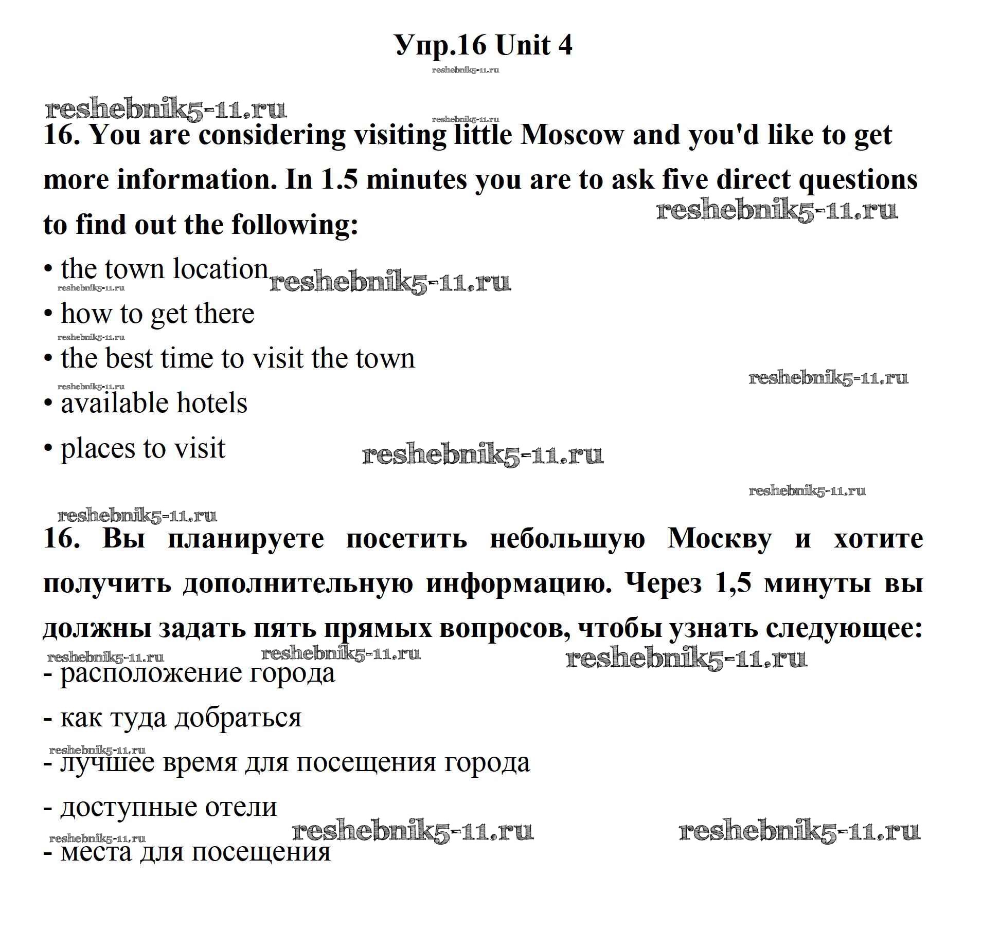 Готовая домашняя работа с ответами по Английскому языку за 11 класс Биболетова, Бабушис, Снежко Учебник Enjoy English Дрофа 2017 ФГОС - Unit 4. What Are Your Whereаbouts? 16