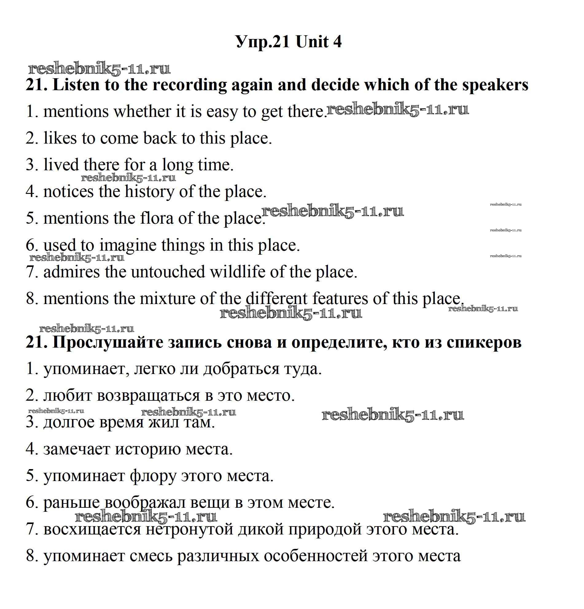 Готовая домашняя работа с ответами по Английскому языку за 11 класс Биболетова, Бабушис, Снежко Учебник Enjoy English Дрофа 2017 ФГОС - Unit 4. What Are Your Whereаbouts? 21