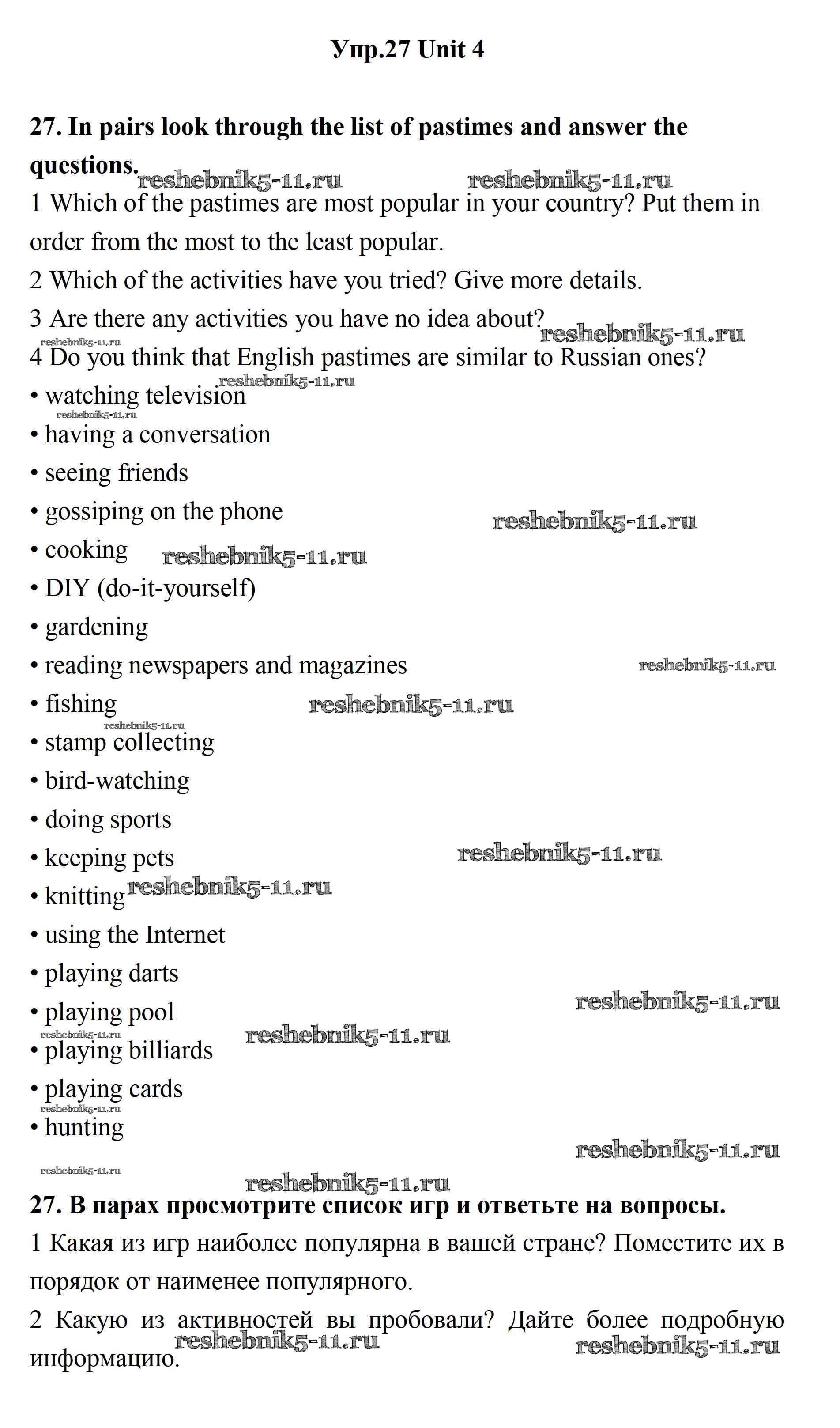 Готовая домашняя работа с ответами по Английскому языку за 11 класс Биболетова, Бабушис, Снежко Учебник Enjoy English Дрофа 2017 ФГОС - Unit 4. What Are Your Whereаbouts? 27