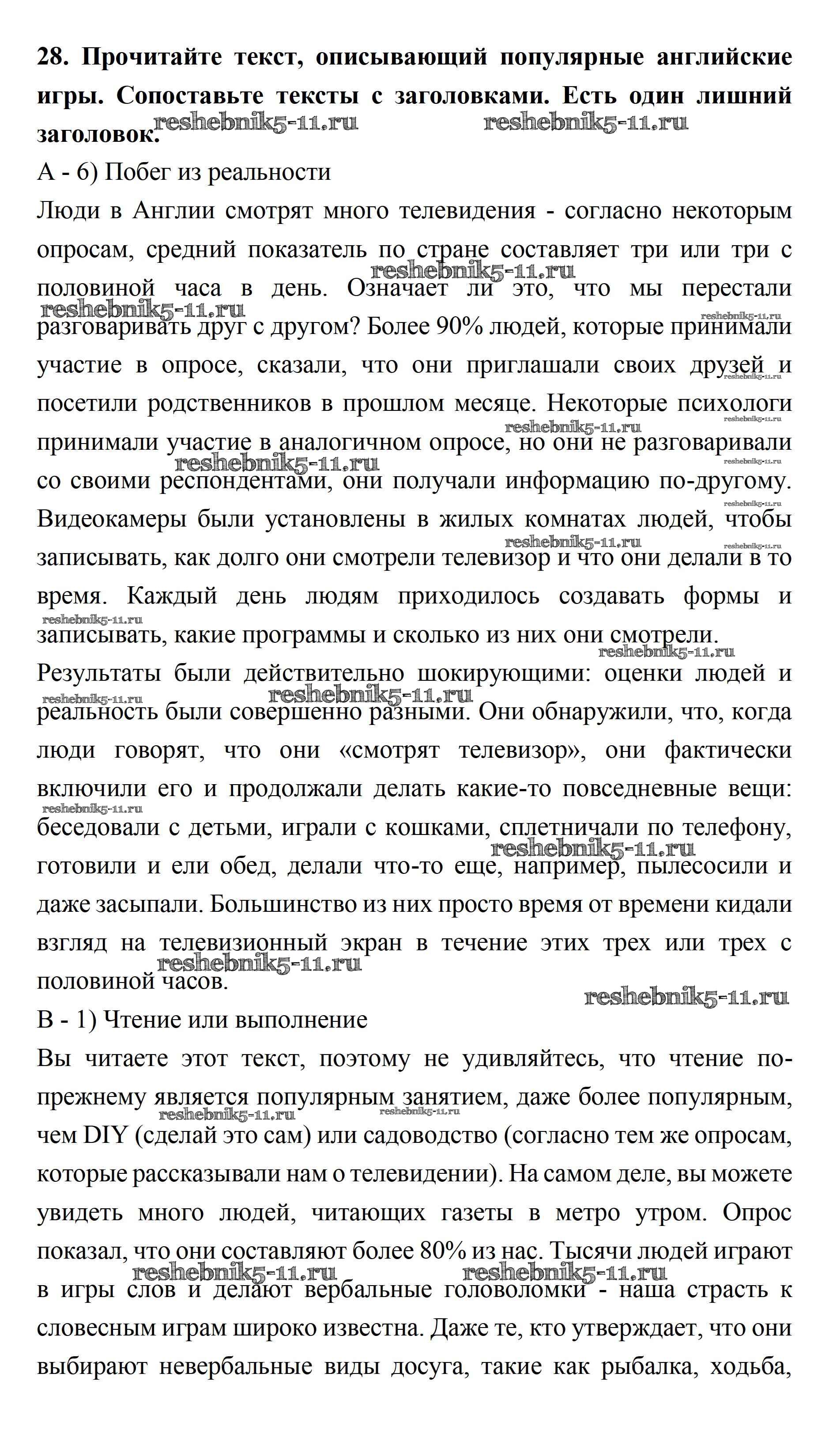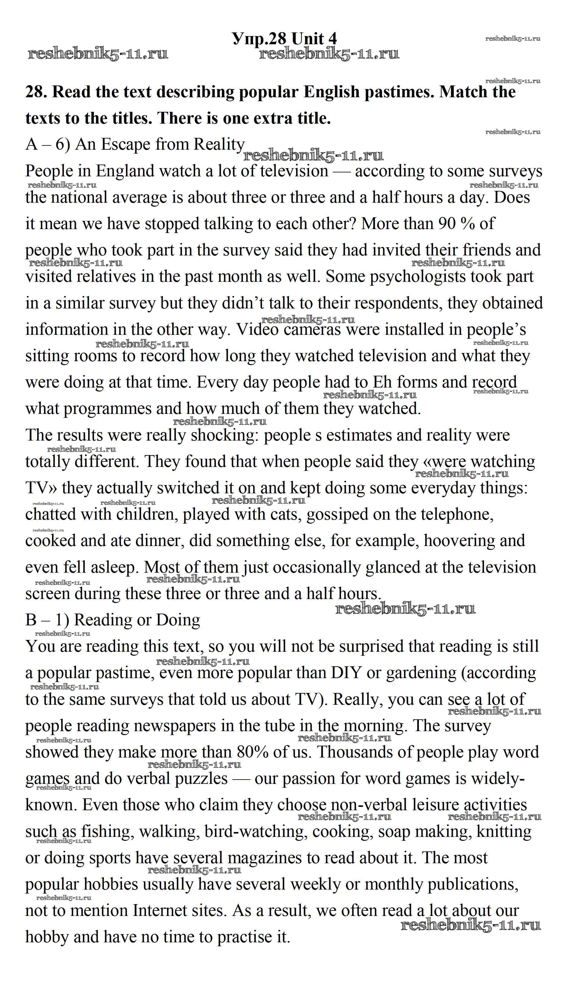 Готовая домашняя работа с ответами по Английскому языку за 11 класс Биболетова, Бабушис, Снежко Учебник Enjoy English Дрофа 2017 ФГОС - Unit 4. What Are Your Whereаbouts? 28