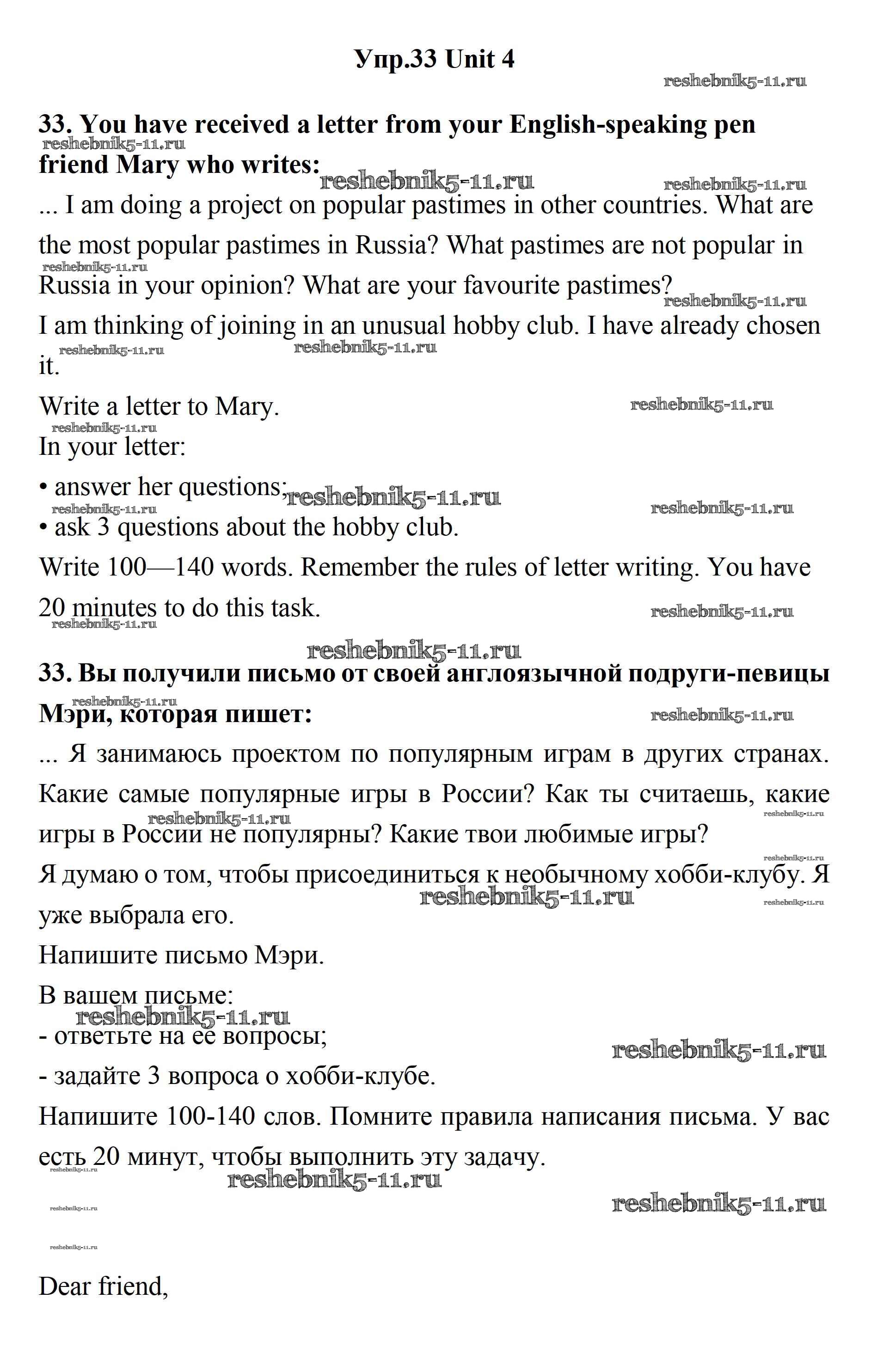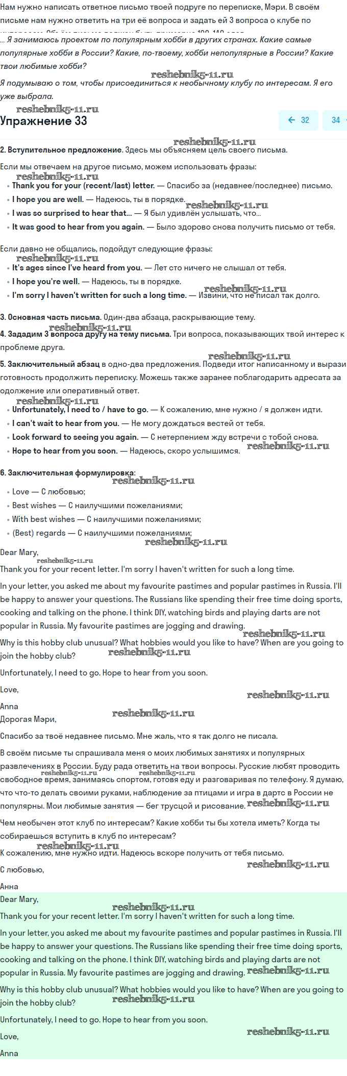 Готовая домашняя работа с ответами по Английскому языку за 11 класс Биболетова, Бабушис, Снежко Учебник Enjoy English Дрофа 2017 ФГОС - Unit 4. What Are Your Whereаbouts? 33