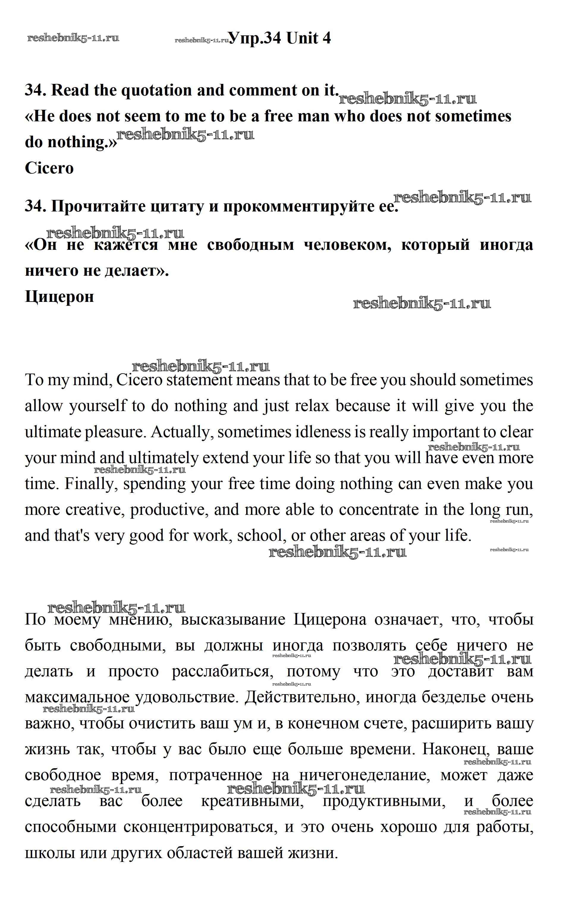 Готовая домашняя работа с ответами по Английскому языку за 11 класс Биболетова, Бабушис, Снежко Учебник Enjoy English Дрофа 2017 ФГОС - Unit 4. What Are Your Whereаbouts? 34