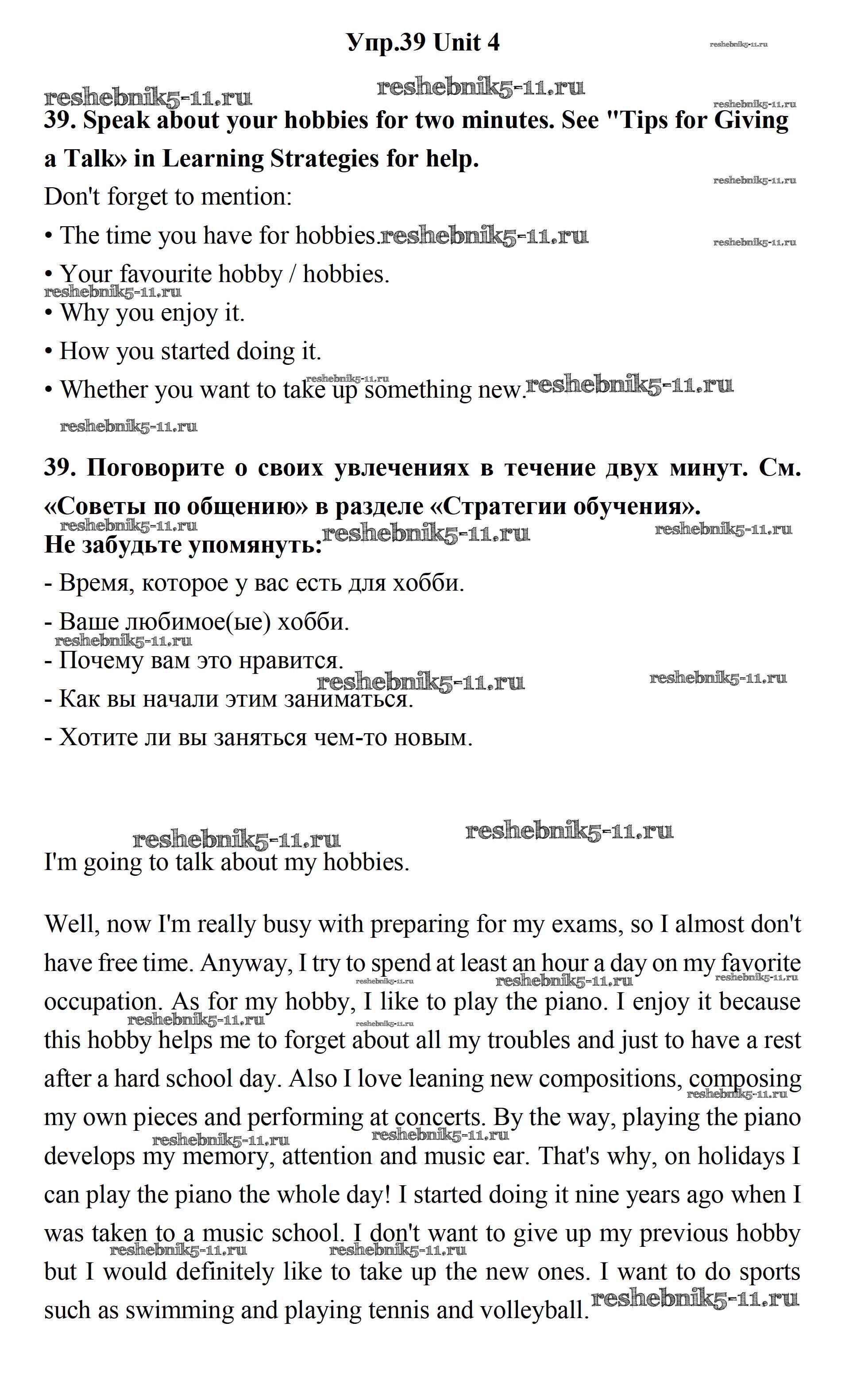 Готовая домашняя работа с ответами по Английскому языку за 11 класс Биболетова, Бабушис, Снежко Учебник Enjoy English Дрофа 2017 ФГОС - Unit 4. What Are Your Whereаbouts? 39